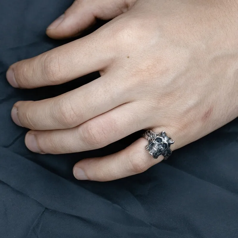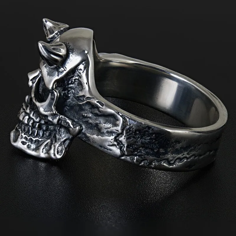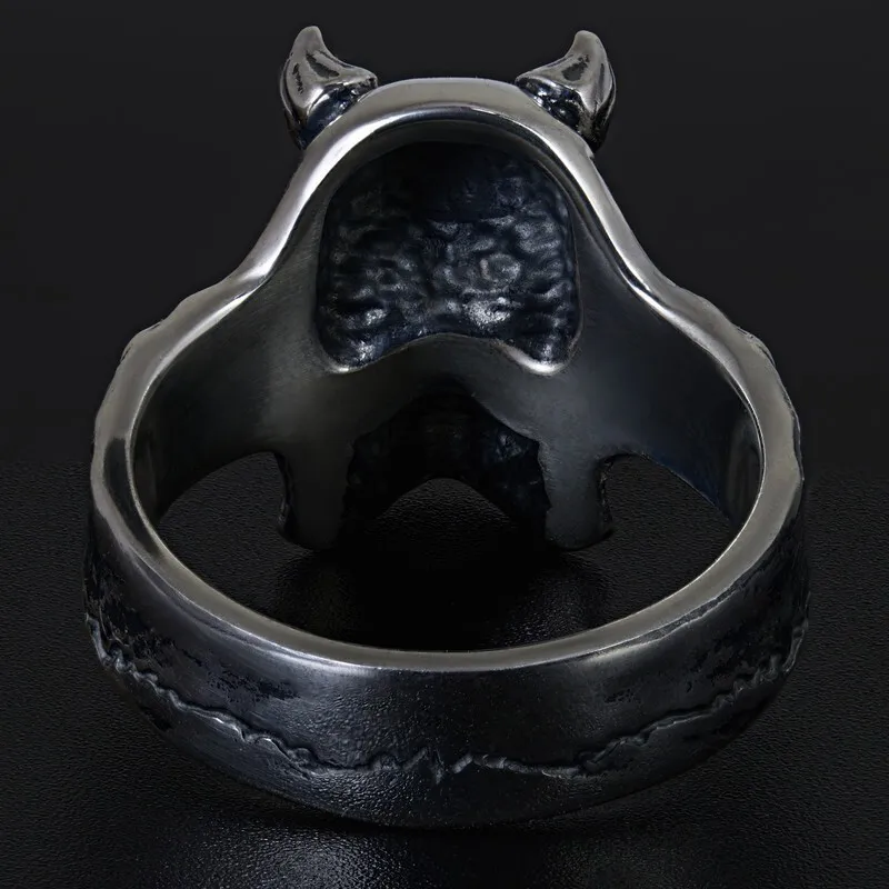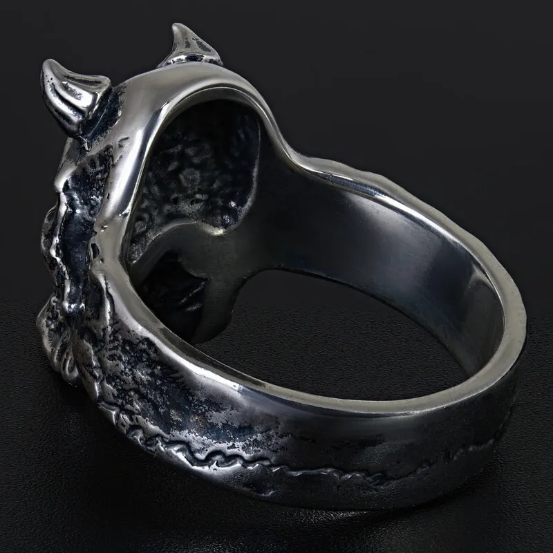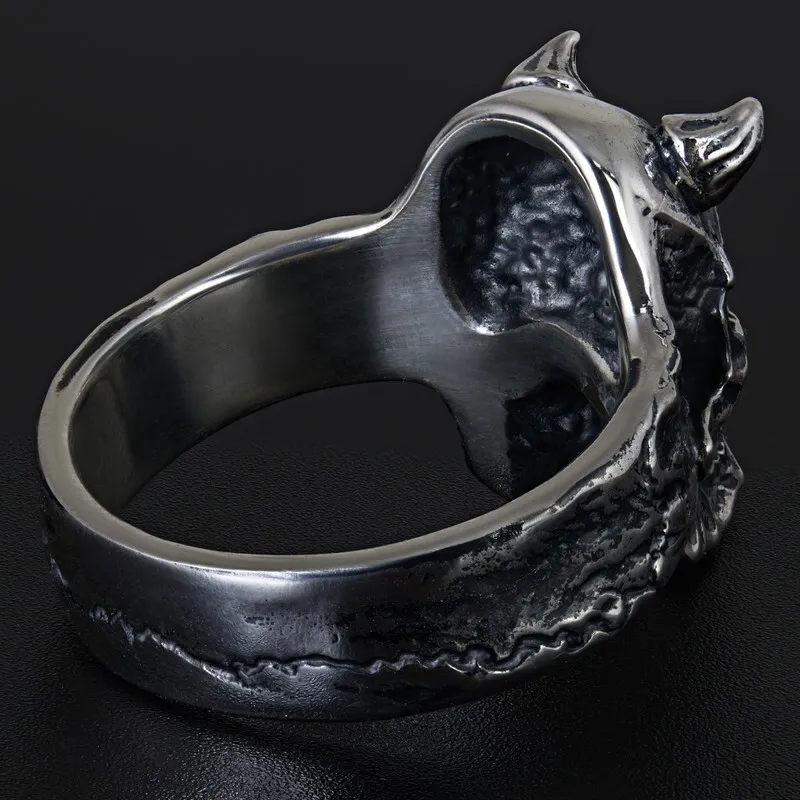 Серебряное мужское кольцо с черепом с рогами. Поверхность зачерненная и отполированная. Размер лицевой части: 17.5 мм. Средний вес изделия 10.06 гр. Все изделия собственного производства, гарантия 12 месяцев. Арт. 8102 Знак черепа широко распространен во многих культурах, чаще всего он является символом бессмертия и пути спасения. У кельтов это был знаком защищающим от злых сил, дарующий здоровье и успех. Символом защиты от смерти является для тех чей образ жизни связан с риском. В Русской Императорской армии символика черепа впервые использовалась в Отечественной войне 1812 года. Конный полк Петербургского ополчения назывался «Смертоносным» или «Бессмертным» полком. У чинов этой части головные уборы были украшены серебряными черепами.