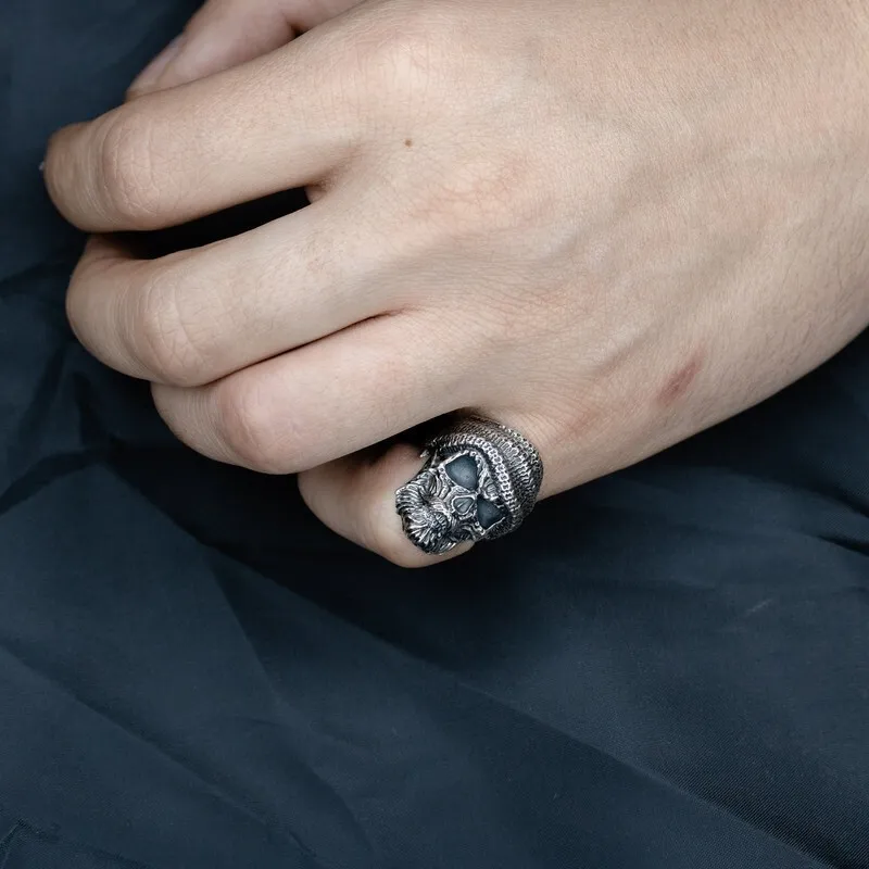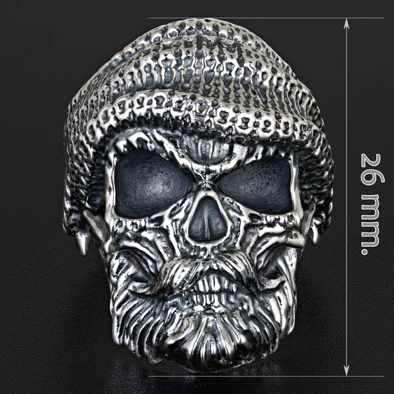 Серебряный мужской перстень с черепом - Старший Боцман. Поверхность зачерненная и отполированная. Размер лицевой части: 26 мм. Средний вес изделия 14.11 гр. Все изделия собственного производства. Арт. 8110 Знак черепа широко распространен во многих культурах, чаще всего он является символом бессмертия и пути спасения. У кельтов это был знаком защищающим от злых сил, дарующий здоровье и успех. Символом защиты от смерти является для тех чей образ жизни связан с риском. В Русской Императорской армии символика черепа впервые использовалась в Отечественной войне 1812 года. Конный полк Петербургского ополчения назывался «Смертоносным» или «Бессмертным» полком. У чинов этой части головные уборы были украшены серебряными черепами.