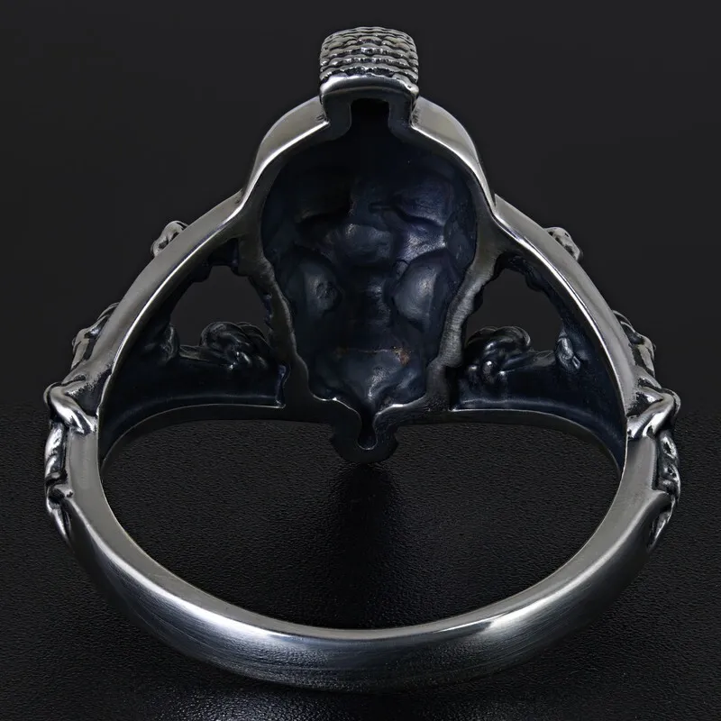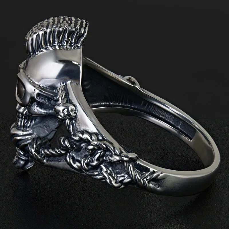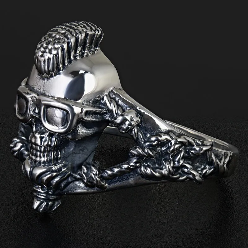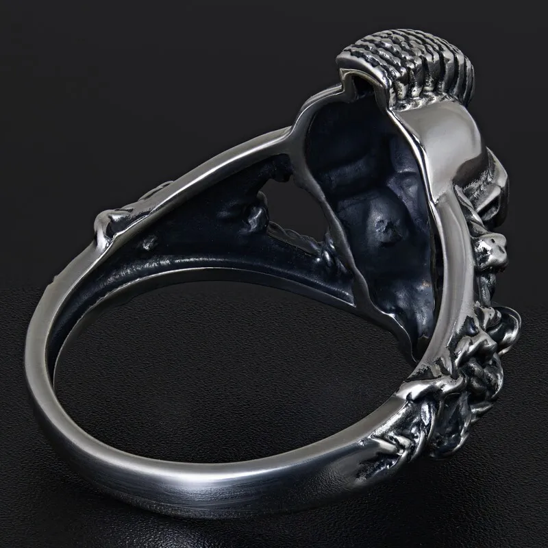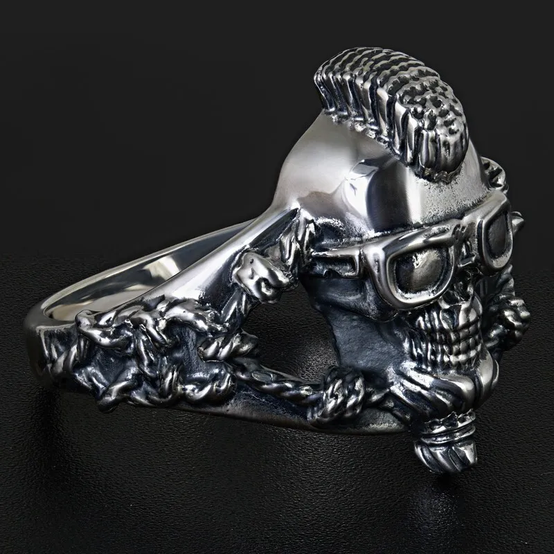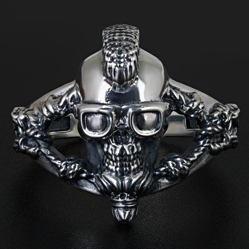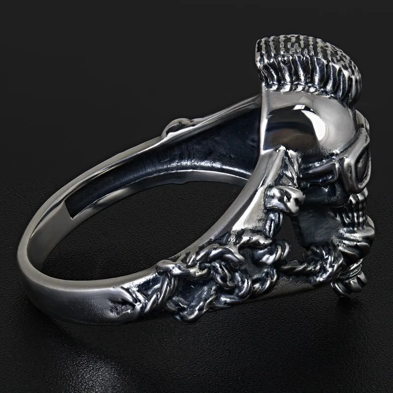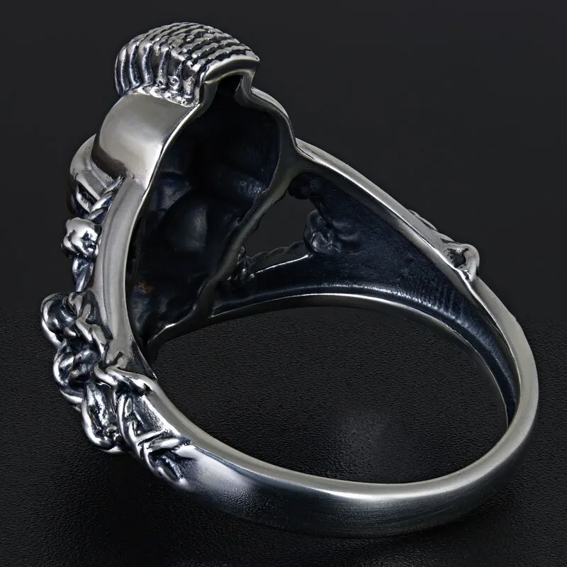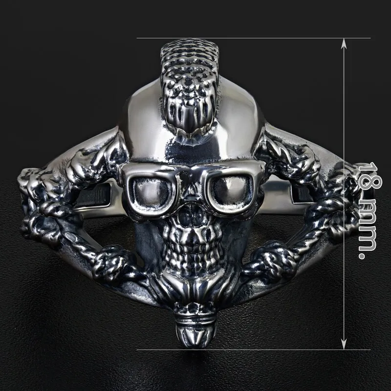 Серебряное мужское кольцо с черепом - Панк. Поверхность зачерненная и отполированная. Размер лицевой части: 18 мм. Средний вес изделия 4.93 гр. Все изделия собственного производства, гарантия 12 месяцев. Арт. 8120 Знак черепа широко распространен во многих культурах, чаще всего он является символом бессмертия и пути спасения. У кельтов это был знаком защищающим от злых сил, дарующий здоровье и успех. Символом защиты от смерти является для тех чей образ жизни связан с риском. В Русской Императорской армии символика черепа впервые использовалась в Отечественной войне 1812 года. Конный полк Петербургского ополчения назывался «Смертоносным» или «Бессмертным» полком. У чинов этой части головные уборы были украшены серебряными черепами.