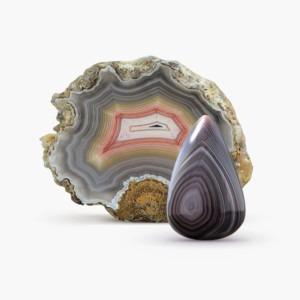 Агат — полудрагоценная разновидность кварца и халцедона, отличающаяся хорошей прочностью. Легко противостоит повышенной кислотности, потому применяется для изготовления сосудов, используемых в химпромышленности. Во многих мифах агату приписывается способность отличать хороших людей от плохих. Камень укрепляет здоровье, благотворно воздействует на мозговую активность, дарит вдохновение. Будучи источником покоя и гармонии, агат очищает ауру дома и наделяет её благоприятной энергией.