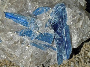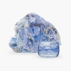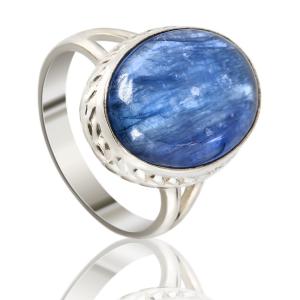 Кианит — синий камень, однако в зависимости от содержания примесей металлов может быть и других оттенков. Он достаточно редкий и красивый, некоторые кристаллы имеют эффект «кошачьего глаза». Считается, что камень способствует улучшению общего состояния человека, позволяет сохранить верность и наделяет владельца скромностью.