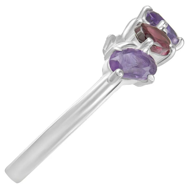 Серебряное кольцо с натуральными камнями аметист и гранат - коллекция Колосок / покрытие Белый Родий