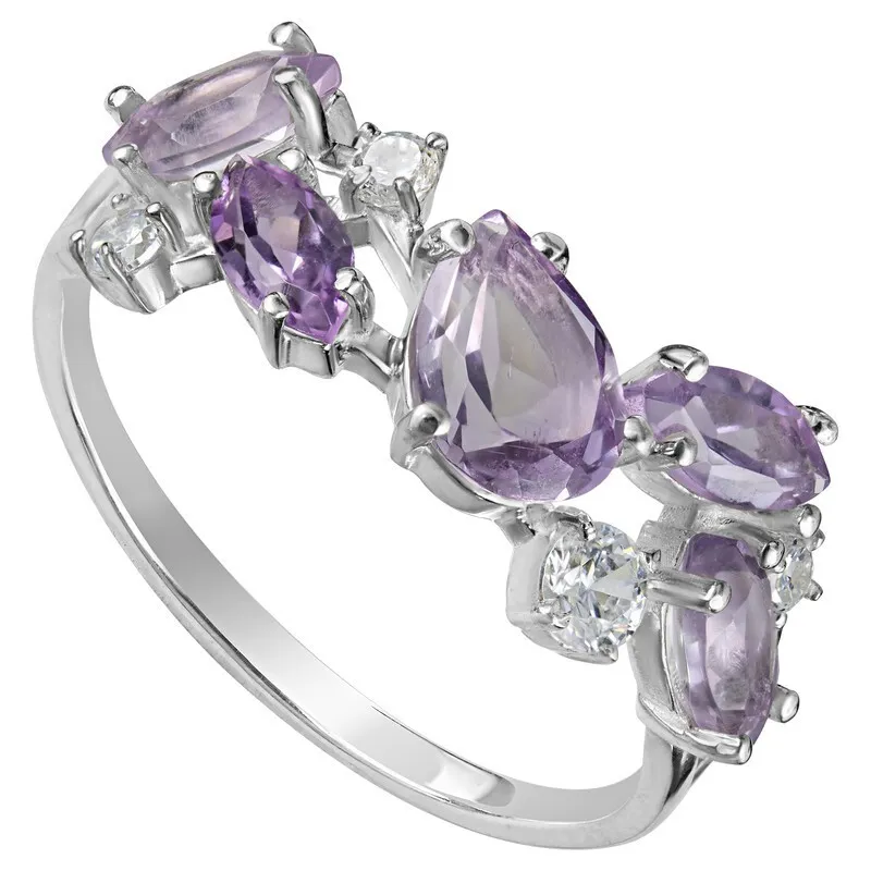 Серебряное кольцо с натуральным аметистом (светлым) - коллекция Росинка / покрытие Чистое Серебро