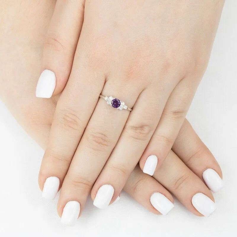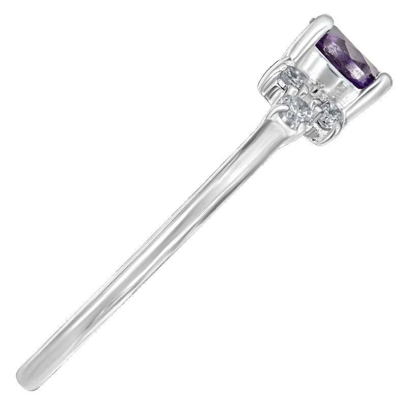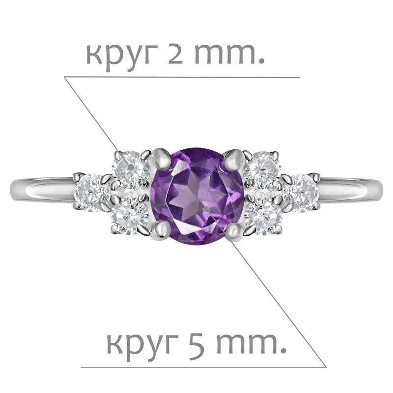 Серебряное кольцо с натуральным аметистом (темный) - коллекция Нова / покрытие Белый Родий.Средний вес украшения с камнями 1.26 гр.Месторождение(я): Аметист (Приполярный Урал, Россия).Ювелирные вставки:Аметист (Натуральный) круг 5 мм., средний вес: 0.48 карат.Белый Нанокристалл круг 2 мм., средний вес: 0.06 карат.Все изделия собственного производства и имеют гарантию 12 месяцев. Арт. 8653WR. Аметист — прозрачный или полупрозрачный камень фиолетовых оттенков, подвид кварца. Он гармонизирует разум, снимает стресс, улучшает кровообращение, способствует умственному развитию и личностному росту. Считается, что он также оберегает от головной боли и бессонницы, служит противоядием, помогает избавиться от алкоголизма и наделяет владельца проницательностью, раскрывая «третий глаз» (за который отвечает чакра аджна). В медитации помогает расслабиться и успокоиться. Положенный под подушку, аметист приносит хорошие сны.