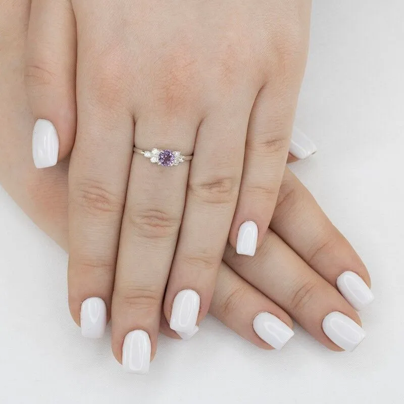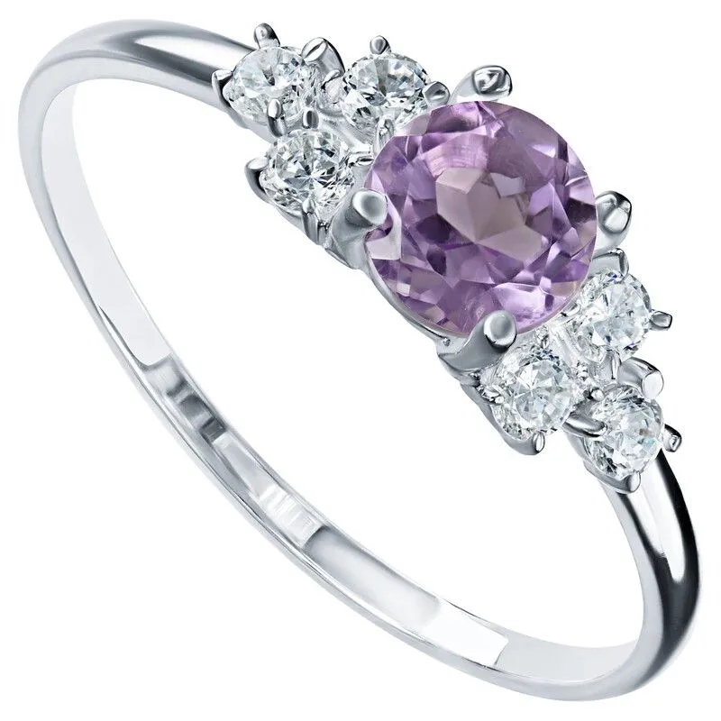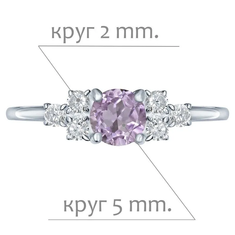 Серебряное кольцо с натуральным аметистом (светлый) - коллекция Нова / покрытие Чистое Серебро.Средний вес украшения с камнями 1.24 гр.Месторождение(я): Аметист (Приполярный Урал, Россия).Ювелирные вставки:Аметист (Натуральный) круг 5 мм., средний вес: 0.48 карат.Белый Нанокристалл круг 2 мм., средний вес: 0.06 карат.Все изделия собственного производства и имеют гарантию 12 месяцев. Арт. 8655AG. Аметист — прозрачный или полупрозрачный камень фиолетовых оттенков, подвид кварца. Он гармонизирует разум, снимает стресс, улучшает кровообращение, способствует умственному развитию и личностному росту. Считается, что он также оберегает от головной боли и бессонницы, служит противоядием, помогает избавиться от алкоголизма и наделяет владельца проницательностью, раскрывая «третий глаз» (за который отвечает чакра аджна). В медитации помогает расслабиться и успокоиться. Положенный под подушку, аметист приносит хорошие сны.