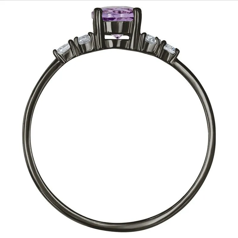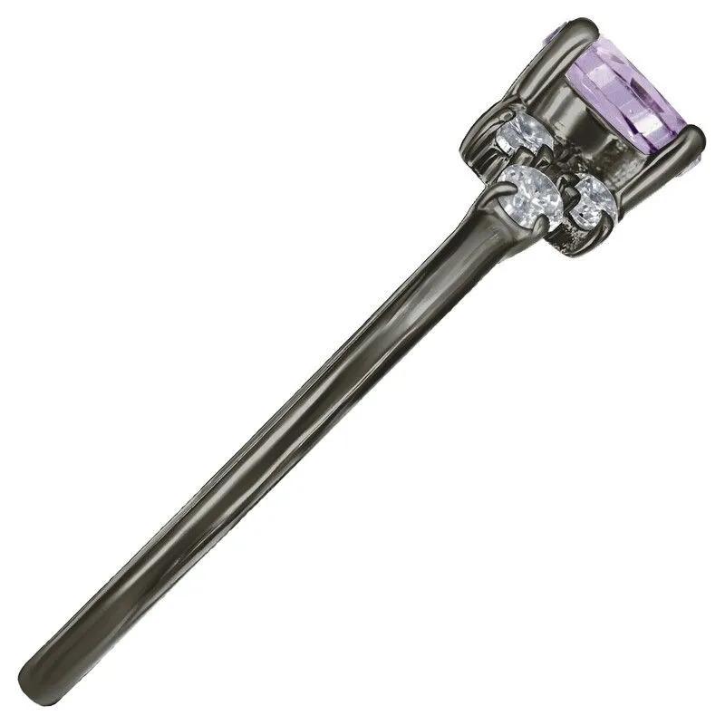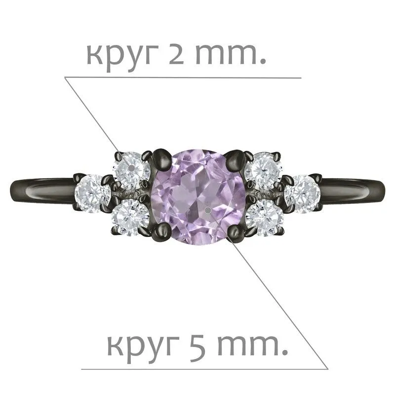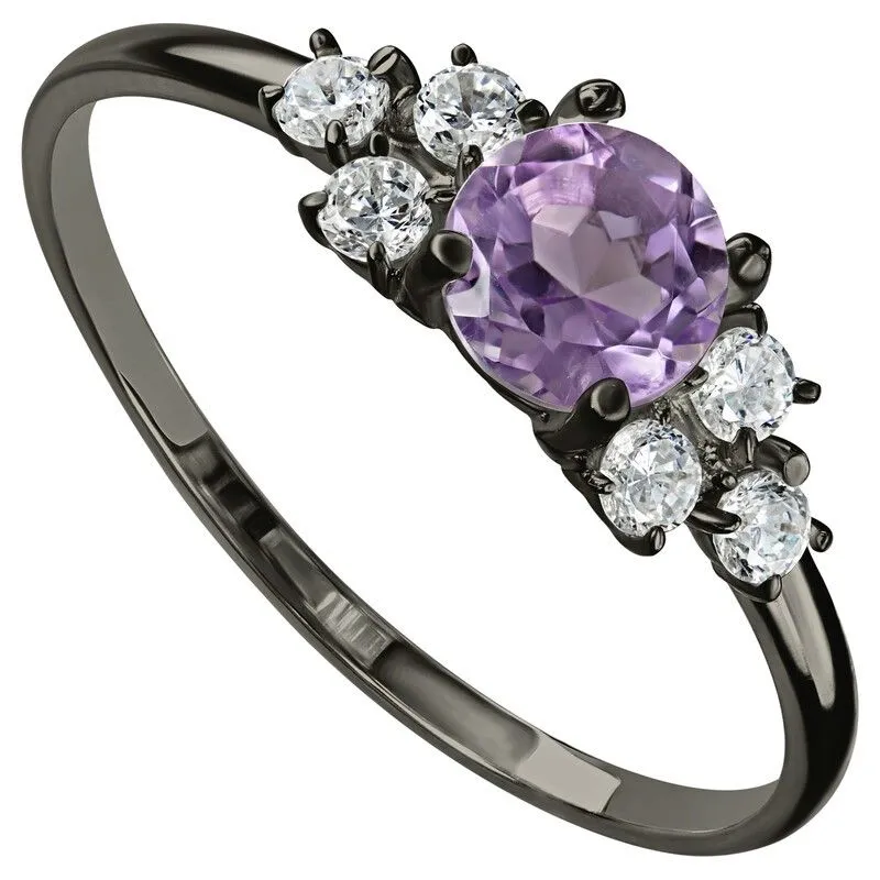 Серебряное кольцо с натуральным аметистом (светлый) - коллекция Нова / покрытие Черный Родий.Средний вес украшения с камнями 1.28 гр.Месторождение(я): Аметист (Приполярный Урал, Россия).Ювелирные вставки:Аметист (Натуральный) круг 5 мм., средний вес: 0.48 карат.Белый Нанокристалл круг 2 мм., средний вес: 0.06 карат.Все изделия собственного производства и имеют гарантию 12 месяцев. Арт. 8655BR. Аметист — прозрачный или полупрозрачный камень фиолетовых оттенков, подвид кварца. Он гармонизирует разум, снимает стресс, улучшает кровообращение, способствует умственному развитию и личностному росту. Считается, что он также оберегает от головной боли и бессонницы, служит противоядием, помогает избавиться от алкоголизма и наделяет владельца проницательностью, раскрывая «третий глаз» (за который отвечает чакра аджна). В медитации помогает расслабиться и успокоиться. Положенный под подушку, аметист приносит хорошие сны.