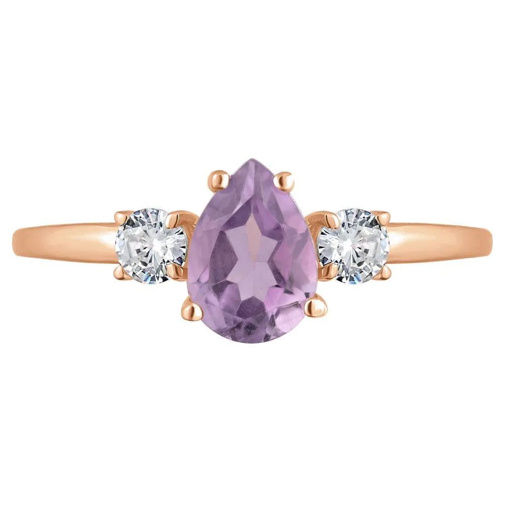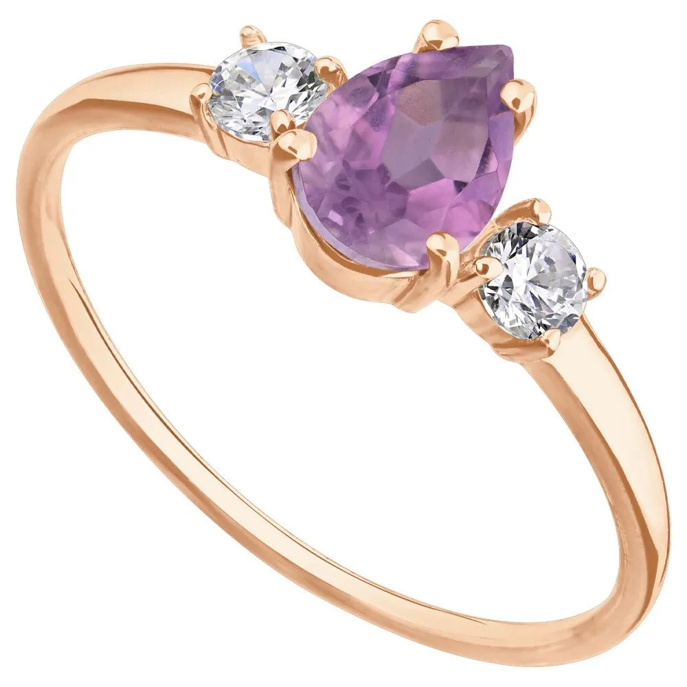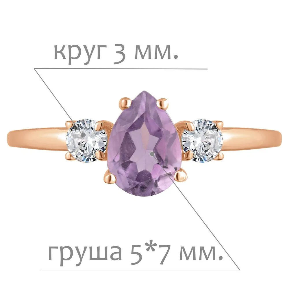 Серебряное кольцо с натуральным аметистом (светлым) - коллекция Алсу (малая) / Красное Золото. Средний вес украшения с камнями 1.34 гр. Месторождение: Аметист (Приполярный Урал, Россия). Ювелирные вставки: Аметист (Натуральный) груша 5*7 мм., средний вес: 0.64 карат. Белый Нанокристалл круг 3 мм. Все изделия собственного производства и имеют гарантию 12 месяцев, к каждому изделию прилагается паспорт. Арт. 8804RG
