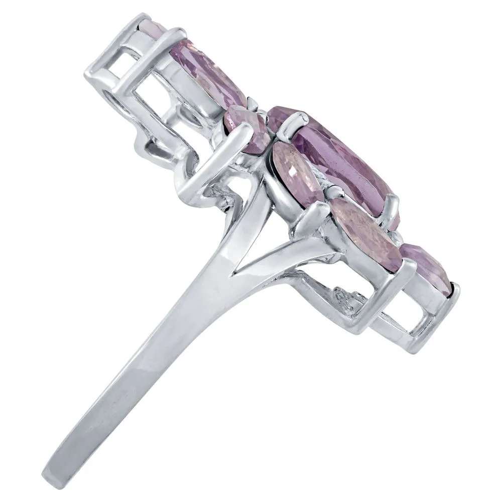 Серебряное кольцо "Элегия" с натуральным аметистом, покрытие Чистое Серебро. Средний вес украшения с камнями 3,43 гр. Месторождение(я) камней: Аметист (Приполярный Урал, Россия). Аметист (Натуральный) груша: 7*10 мм., средний вес: 1,77 карат. Аметист (Натуральный) маркиз: 3*6 мм., средний вес: 0,22 карат. Размер лицевой части: 15*23 мм. Все изделия собственного производства и имеют гарантию 12 месяцев. Арт. 6609AG. Аметист — прозрачный или полупрозрачный камень фиолетовых оттенков, подвид кварца. Он гармонизирует разум, снимает стресс, улучшает кровообращение, способствует умственному развитию и личностному росту. Считается, что он также оберегает от головной боли и бессонницы, служит противоядием, помогает избавиться от алкоголизма и наделяет владельца проницательностью, раскрывая «третий глаз» (за который отвечает чакра аджна). В медитации помогает расслабиться и успокоиться. Положенный под подушку, аметист приносит хорошие сны.