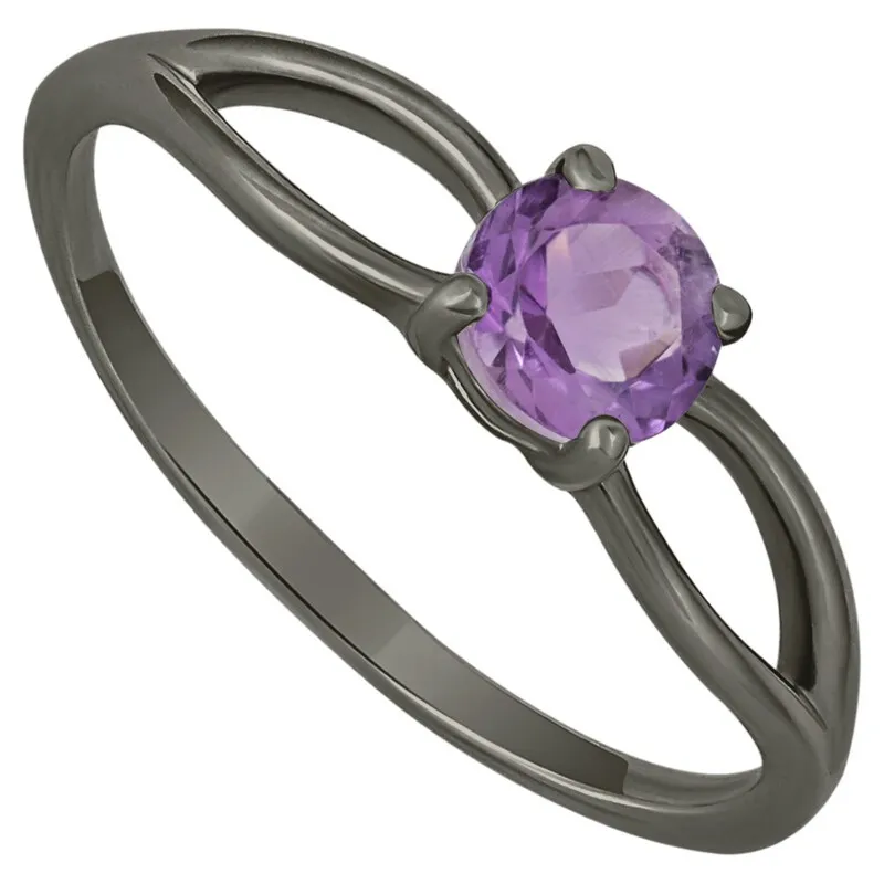 Серебряное кольцо с натуральным аметистом - коллекция Мона, покрытие Черный Родий.