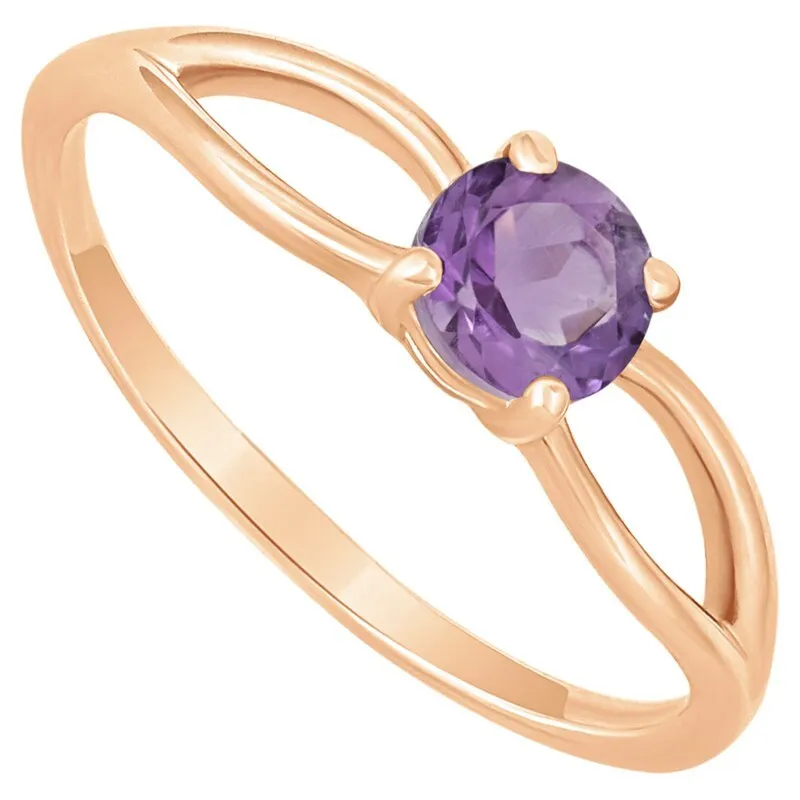 Серебряное кольцо с натуральным аметистом - коллекция Мона. Серебряное кольцо 925 пробы с покрытием красное золото. Цвет покрытия соответствует швейцарскому цветовому стандарту NIHS -5N и цвету красного золота 585 в России. На последней фотографии мы разместили сравнительную фотографию 3 цвета золотого покрытия. Помимо предания золотого цвета Вашему изделию, тонкий слой золота защищает от окисления. Для более стойкого эффекта золочения и долговечности покрытия мы дополнительно наносим подслой палладия (Pd). Средний вес изделия с камнем составляет 1.48 гр. Месторождение(я): Аметист (Приполярный Урал, Россия). Аметист (Натуральный) круг 5 мм., средний вес: 0.49 карат. Все изделия собственного производства, гарантия 12 месяцев. Арт. 7704. Аметист — прозрачный или полупрозрачный камень фиолетовых оттенков, подвид кварца. Он гармонизирует разум, снимает стресс, улучшает кровообращение, способствует умственному развитию и личностному росту. Считается, что он также оберегает от головной боли и бессонницы, служит противоядием, помогает избавиться от алкоголизма и наделяет владельца проницательностью, раскрывая «третий глаз» (за который отвечает чакра аджна). В медитации помогает расслабиться и успокоиться. Положенный под подушку, аметист приносит хорошие сны.