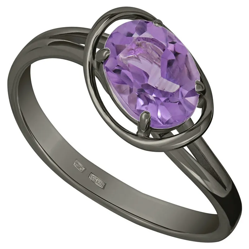 Серебряное кольцо с натуральным аметистом - коллекция Фрейя, покрытие Черный Родий. Средний вес украшения с камнем составляет 2.37 гр. Месторождение(я): Аметист (Приполярный Урал, Россия).