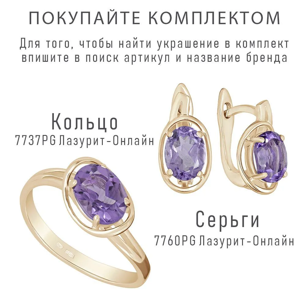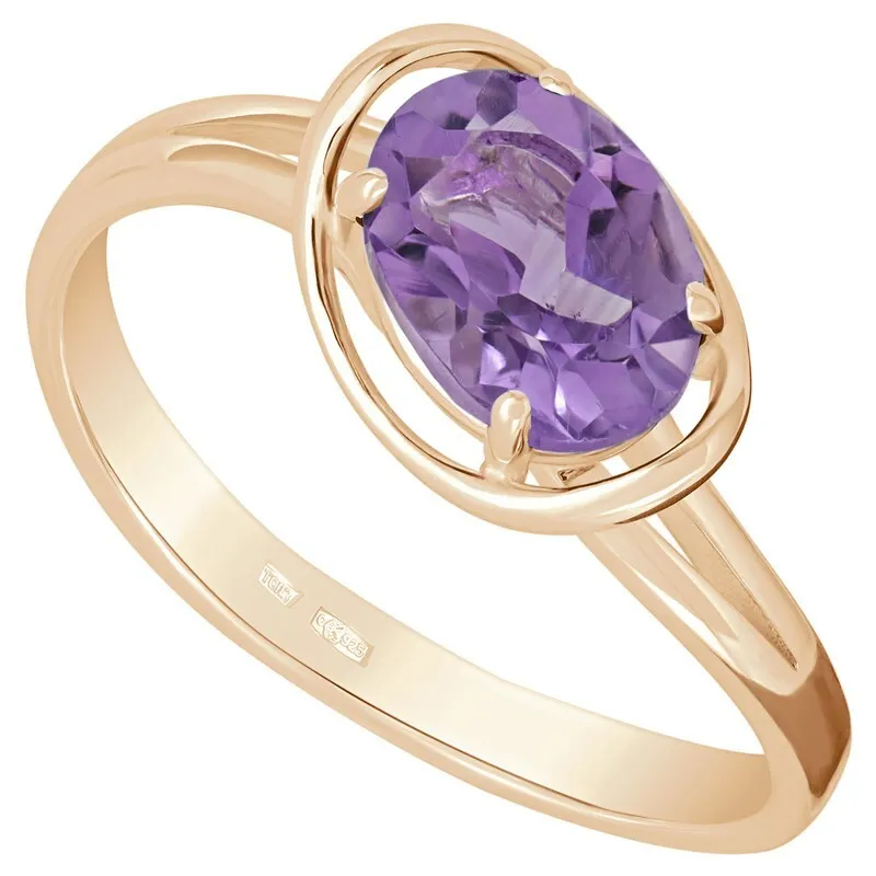 Серебряное кольцо с натуральным аметистом - коллекция Фрейя. Серебряное кольцо 925 пробы с покрытием розовое золото. Цвет покрытия соответствует швейцарскому цветовому стандарту NIHS -4N и цвету розового золота 585 в России. На последней фотографии мы разместили сравнительную фотографию 3 цвета золотого покрытия. Помимо предания золотого цвета Вашему изделию, тонкий слой золота защищает от окисления. Для более стойкого эффекта золочения и долговечности покрытия мы дополнительно наносим подслой палладия (Pd). Средний вес изделия с камнем составляет 2.37 гр. Месторождение: Аметист (Приполярный Урал, Россия). Аметист (Натуральный) овал 6*8 мм., средний вес: 1.19 карат. Все изделия собственного производства, гарантия 12 месяцев. Арт. 7737 Аметист — прозрачный или полупрозрачный камень фиолетовых оттенков, подвид кварца. Он гармонизирует разум, снимает стресс, улучшает кровообращение, способствует умственному развитию и личностному росту. Считается, что он также оберегает от головной боли и бессонницы, служит противоядием, помогает избавиться от алкоголизма и наделяет владельца проницательностью, раскрывая «третий глаз» (за который отвечает чакра аджна). В медитации помогает расслабиться и успокоиться. Положенный под подушку, аметист приносит хорошие сны..