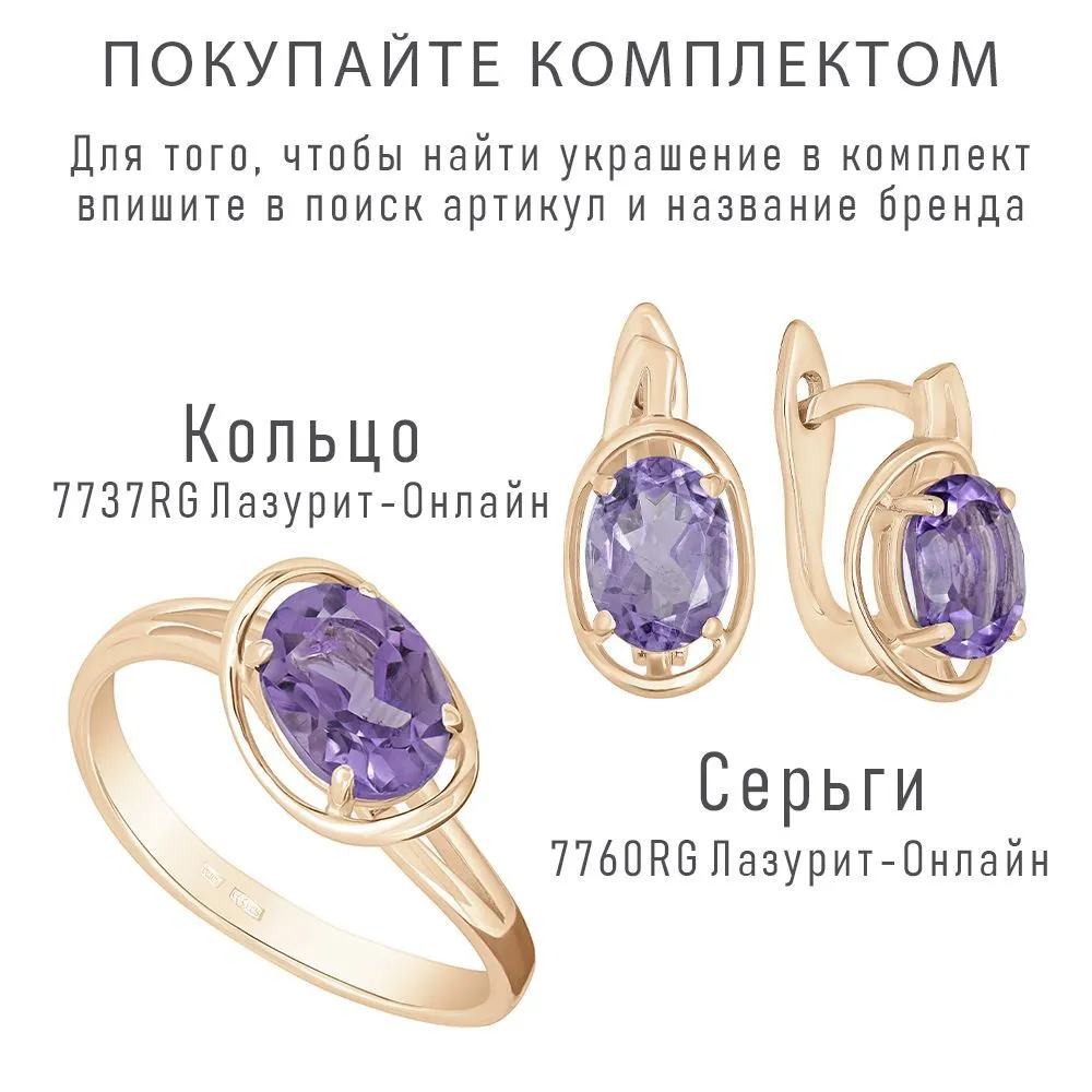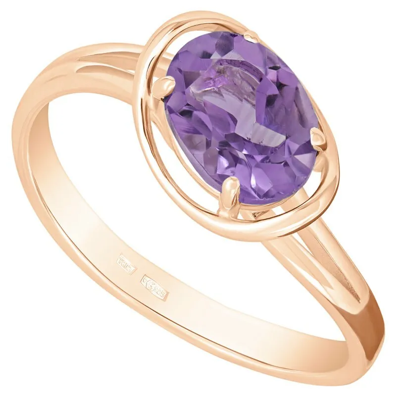 Серебряное кольцо с натуральным аметистом - коллекция Фрейя. Серебряное кольцо 925 пробы с покрытием красное золото. Цвет покрытия соответствует швейцарскому цветовому стандарту NIHS -5N и цвету красного золота 585 в России. На последней фотографии мы разместили сравнительную фотографию 3 цвета золотого покрытия. Помимо предания золотого цвета Вашему изделию, тонкий слой золота защищает от окисления. Для более стойкого эффекта золочения и долговечности покрытия мы дополнительно наносим подслой палладия (Pd). Средний вес изделия с камнем составляет 2.37 гр. Месторождение: Аметист (Приполярный Урал, Россия). Аметист (Натуральный) овал 6*8 мм., средний вес: 1.19 карат. Все изделия собственного производства, гарантия 12 месяцев. Арт. 7737 Аметист — прозрачный или полупрозрачный камень фиолетовых оттенков, подвид кварца. Он гармонизирует разум, снимает стресс, улучшает кровообращение, способствует умственному развитию и личностному росту. Считается, что он также оберегает от головной боли и бессонницы, служит противоядием, помогает избавиться от алкоголизма и наделяет владельца проницательностью, раскрывая «третий глаз» (за который отвечает чакра аджна). В медитации помогает расслабиться и успокоиться. Положенный под подушку, аметист приносит хорошие сны..