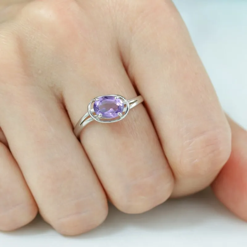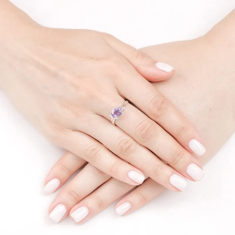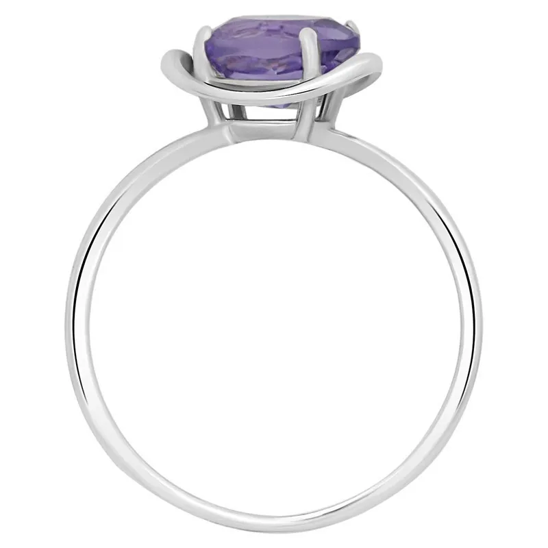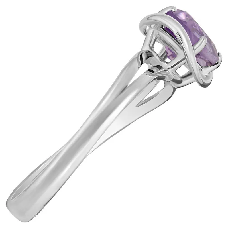 Серебряное кольцо с натуральным аметистом (светлым) - коллекция Фрейя / покрытие Белый Родий