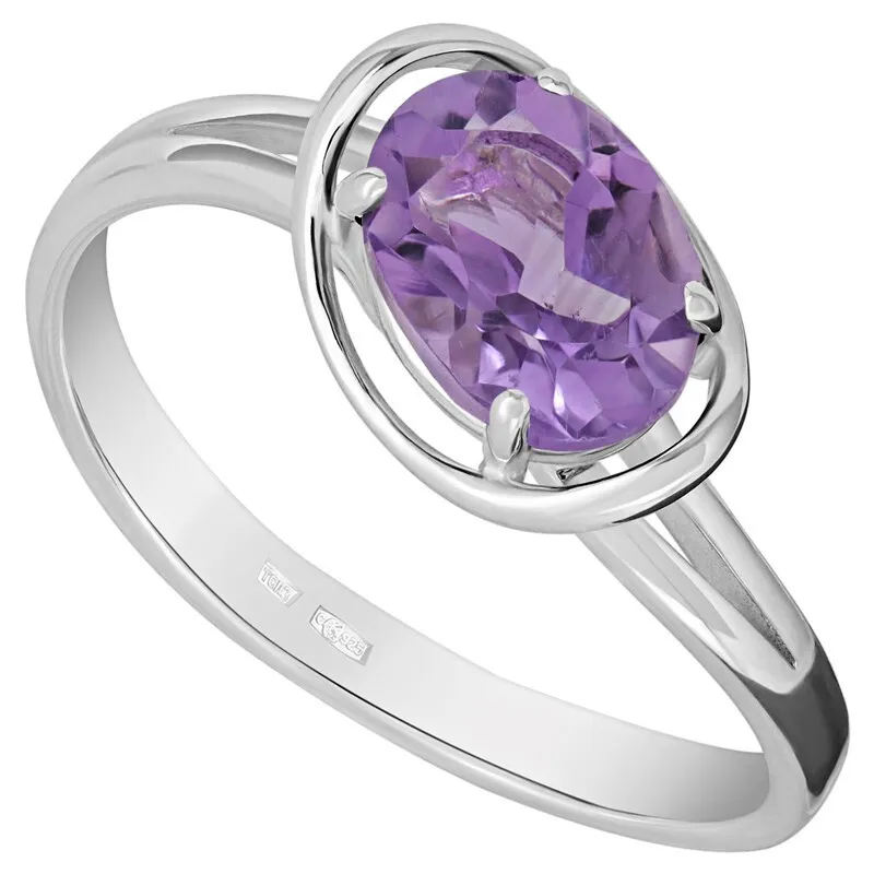 Серебряное кольцо с натуральным аметистом - коллекция Фрейя. Средний вес изделия с камнем составляет 2.37 гр. Месторождение: Аметист (Приполярный Урал, Россия). Аметист (Натуральный) овал 6*8 мм., средний вес: 1.19 карат. Все изделия собственного производства, гарантия 12 месяцев. Арт. 7737 Аметист — прозрачный или полупрозрачный камень фиолетовых оттенков, подвид кварца. Он гармонизирует разум, снимает стресс, улучшает кровообращение, способствует умственному развитию и личностному росту. Считается, что он также оберегает от головной боли и бессонницы, служит противоядием, помогает избавиться от алкоголизма и наделяет владельца проницательностью, раскрывая «третий глаз» (за который отвечает чакра аджна). В медитации помогает расслабиться и успокоиться. Положенный под подушку, аметист приносит хорошие сны..