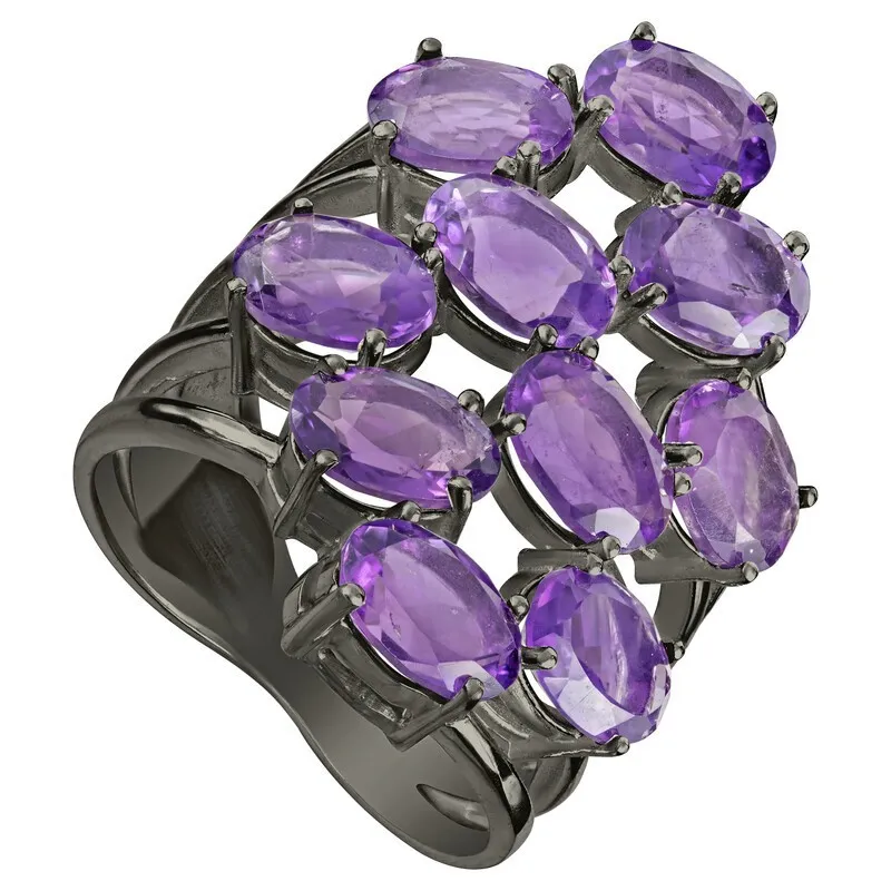 Серебряное кольцо с натуральным аметистом - коллекция Аэлита, покрытие Черный Родий.