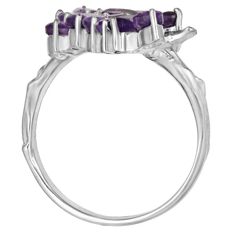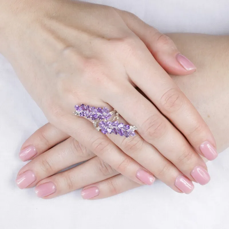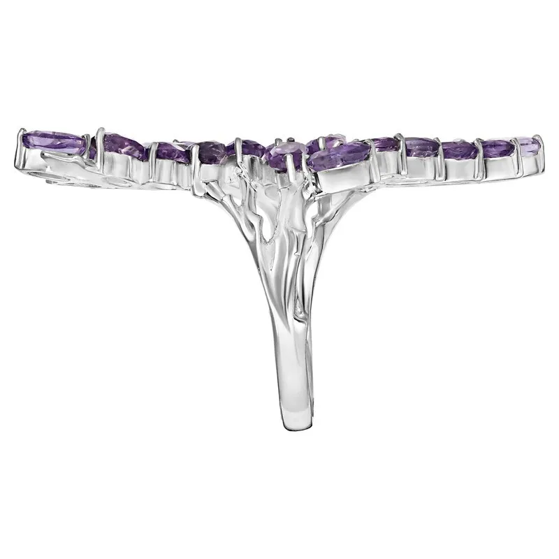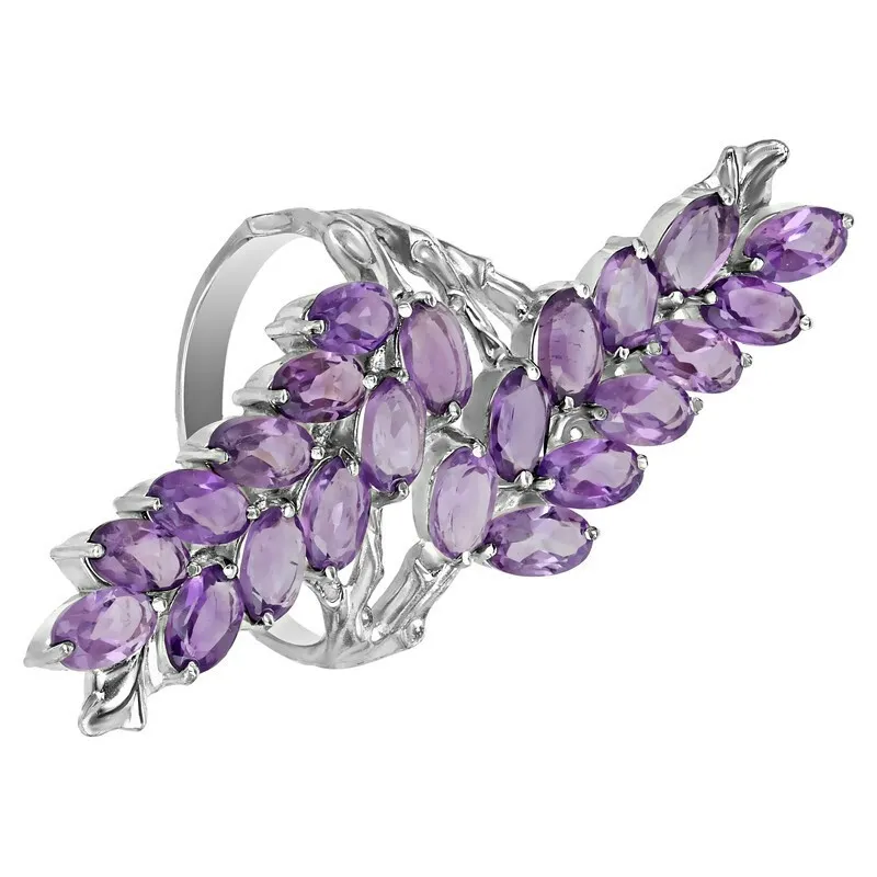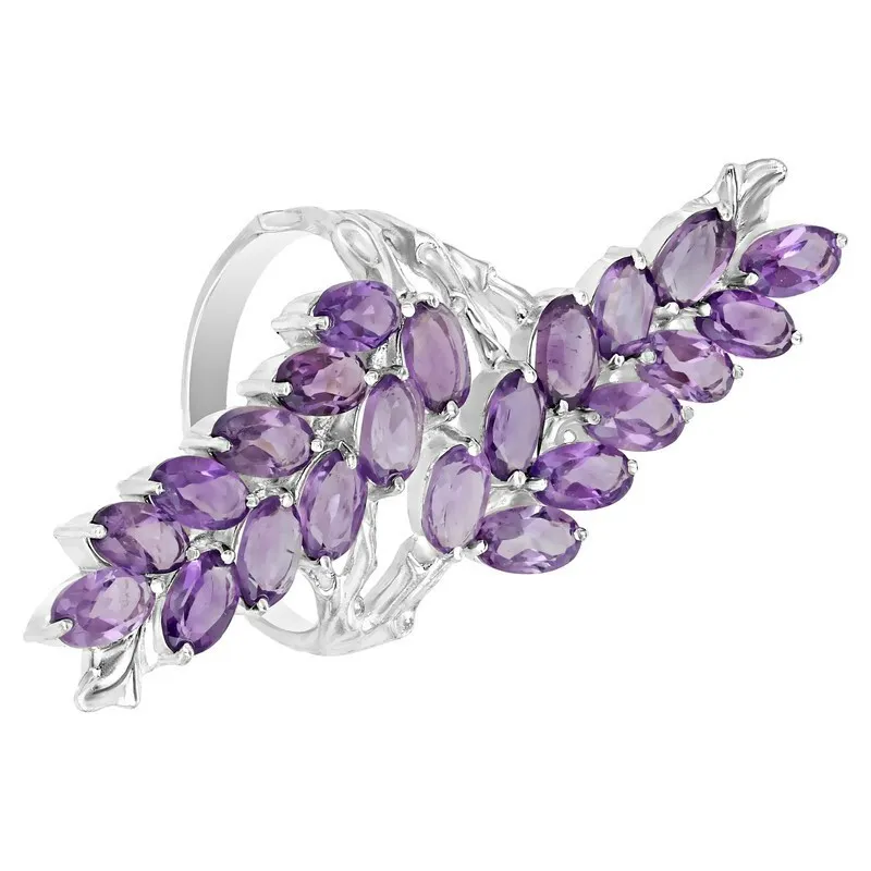 Серебряное кольцо с натуральным аметистом - коллекция Флора. Средний вес изделия с камнями 5.98 гр. Месторождение(я): Аметист (Приполярный Урал, Россия). Аметист (Натуральный) овал 3*5 мм., средний вес: 0.25 карат. Размер лицевой части: 15*44 мм. Все изделия собственного производства, гарантия 12 месяцев. Арт. 7860