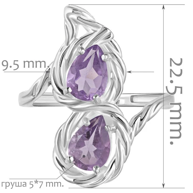 Серебряное кольцо с натуральным аметистом - коллекция Ривьера.