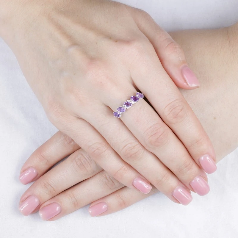 Серебряное кольцо с натуральным аметистом (светлым) - коллекция Колосок / покрытие Чистое Серебро