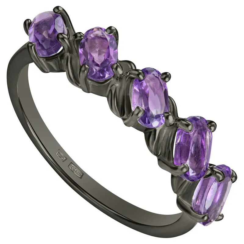 Серебряное кольцо с натуральным аметистом - коллекция Колосок, покрытие Черный Родий.