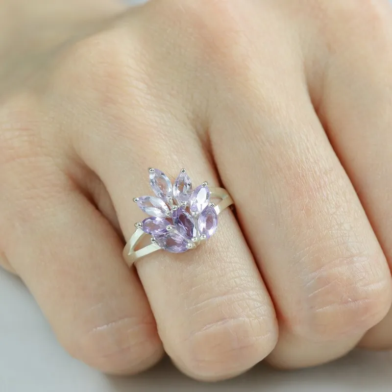 Серебряное кольцо с натуральным аметистом - коллекция Искра. Средний вес изделия с камнями 2.82 гр. Месторождение: Аметист (Приполярный Урал, Россия). Аметист (Натуральный) маркиз 3*6 мм., средний вес: 0.23 карат. Все изделия собственного производства, гарантия 12 месяцев. Арт. 8074