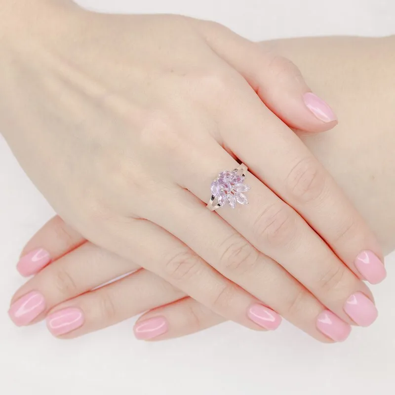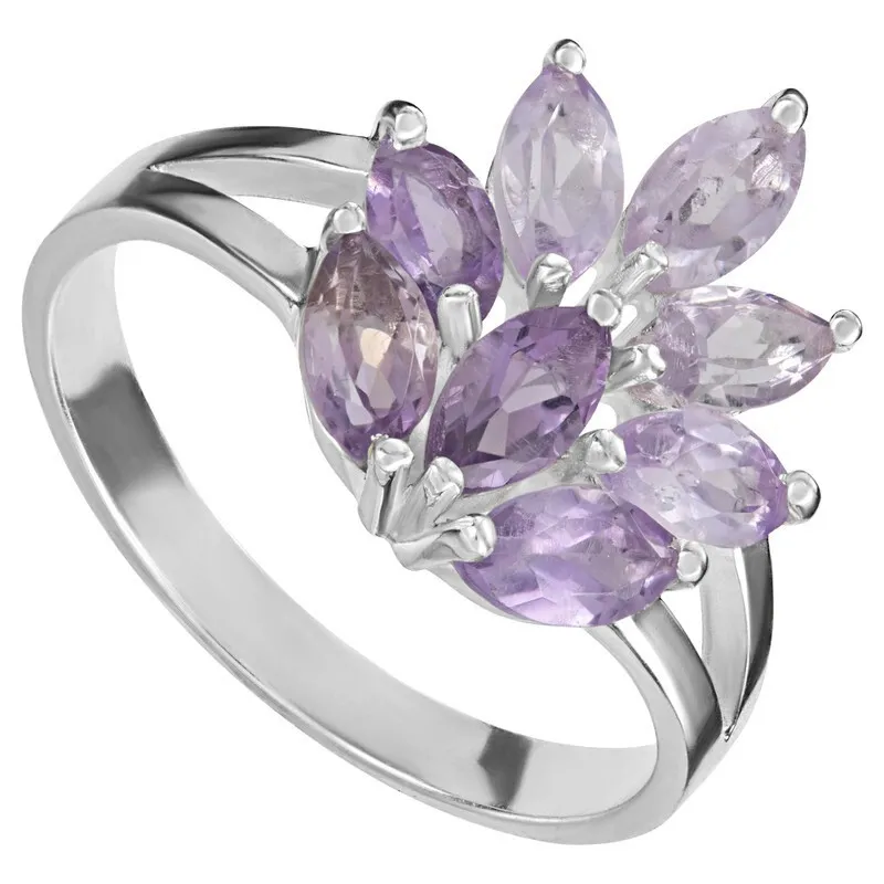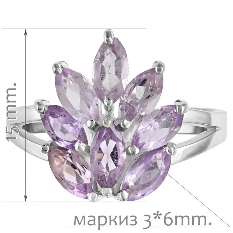 Серебряное кольцо с натуральным аметистом (светлым) - коллекция Искра / Без покрытия