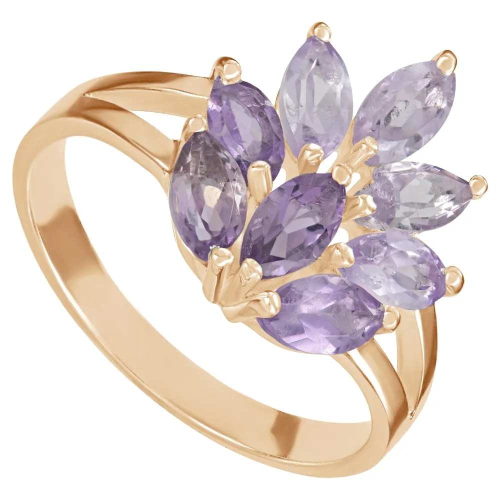 Серебряное кольцо с натуральным аметистом - коллекция Искра, покрытие Розовое Золото.