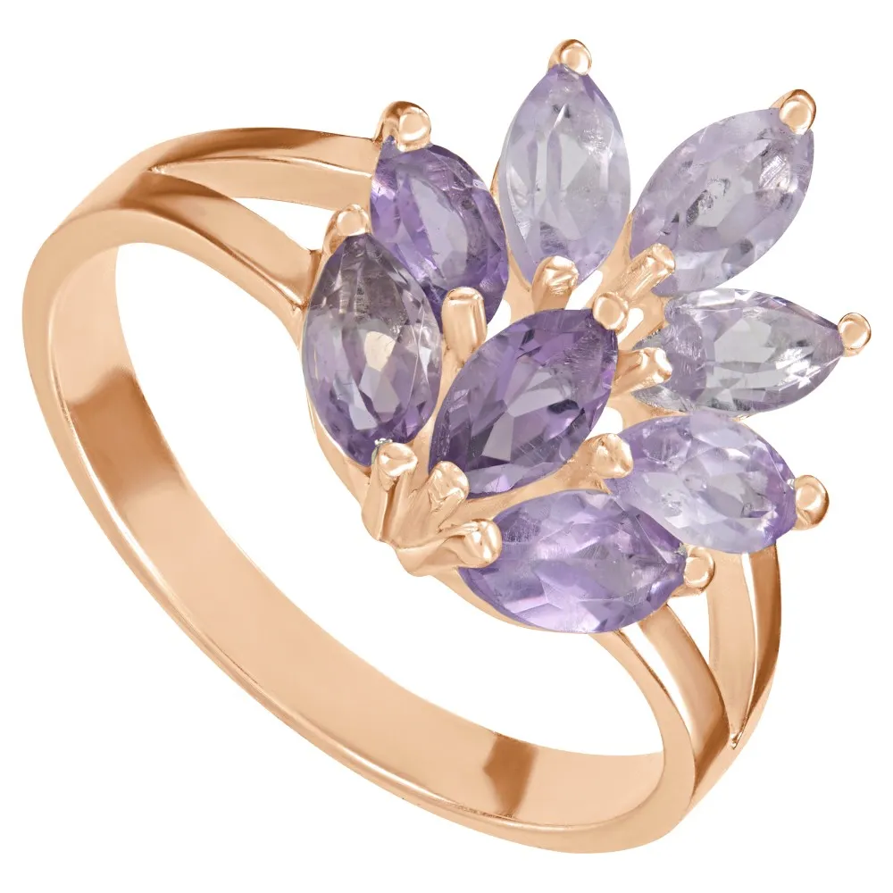 Серебряное кольцо с натуральным аметистом - коллекция Искра, покрытие Красное Золото.