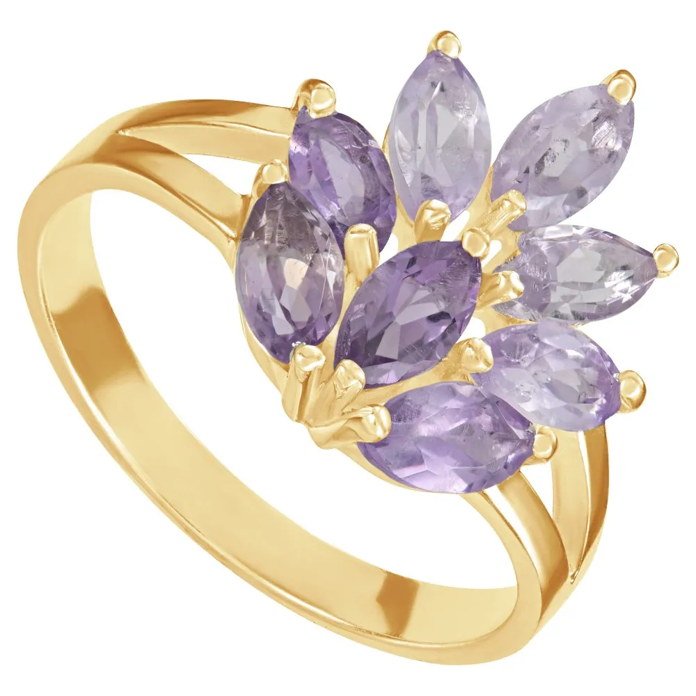 Серебряное кольцо с натуральным аметистом - коллекция Искра, покрытие Желтое Золото.