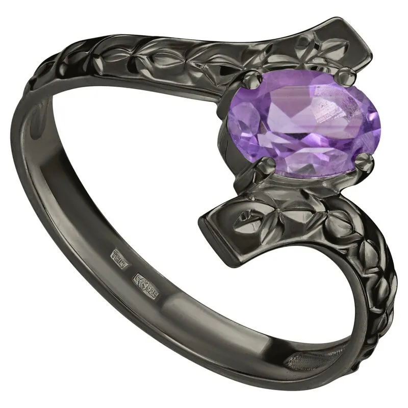 Серебряное кольцо с натуральным аметистом - коллекция Тея, покрытие Черный Родий.