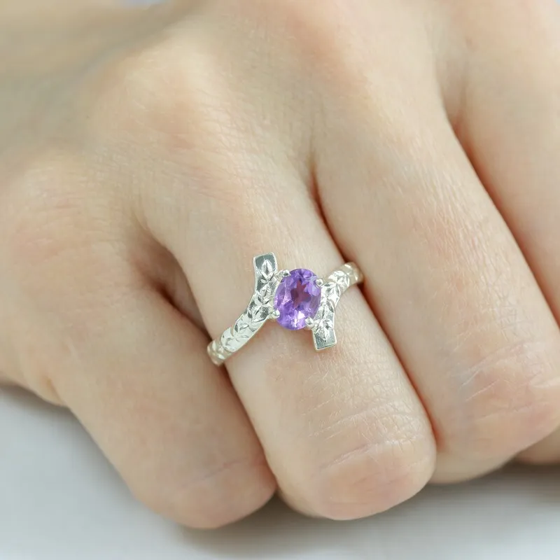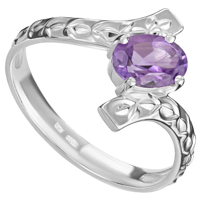Серебряное кольцо с натуральным аметистом - коллекция Тея. Средний вес изделия с камнями 2.41 гр. Месторождение: Аметист (Приполярный Урал, Россия) Аметист (Натуральный) овал 5*7 мм., средний вес: 0.83 карат. Все изделия собственного производства, гарантия 12 месяцев. Арт. 8098