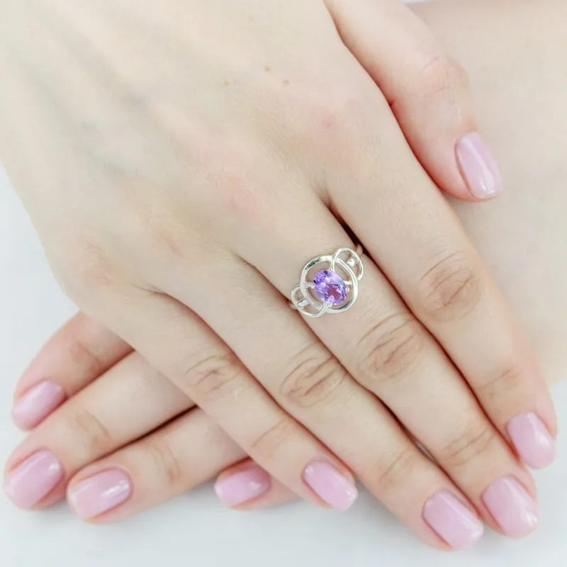 Серебряное кольцо с натуральным аметистом (светлым) - коллекция Юнона. Средний вес изделия с камнями 2.3 гр. Месторождение: Аметист (Приполярный Урал, Россия). Аметист (Натуральный) овал 6*8 мм., средний вес: 1.29 карат. Все изделия собственного производства, гарантия 12 месяцев. Арт. 8412. Аметист — прозрачный или полупрозрачный камень фиолетовых оттенков, подвид кварца. Он гармонизирует разум, снимает стресс, улучшает кровообращение, способствует умственному развитию и личностному росту. Считается, что он также оберегает от головной боли и бессонницы, служит противоядием, помогает избавиться от алкоголизма и наделяет владельца проницательностью, раскрывая «третий глаз» (за который отвечает чакра аджна). В медитации помогает расслабиться и успокоиться. Положенный под подушку, аметист приносит хорошие сны.