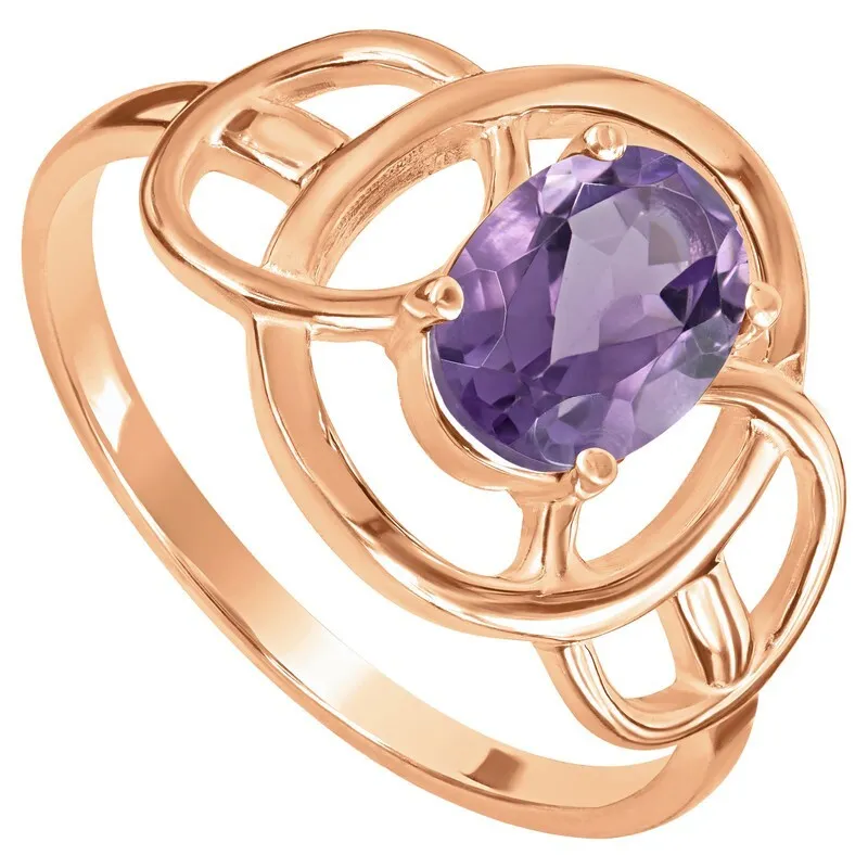 Серебряное кольцо с натуральным аметистом (светлым) - коллекция Юнона. Серебряное кольцо 925 пробы с покрытием красное золото. Цвет покрытия соответствует швейцарскому цветовому стандарту NIHS -5N и цвету красного золота 585 в России. На последней фотографии мы разместили сравнительную фотографию 3 цвета золотого покрытия. Помимо предания золотого цвета Вашему изделию, тонкий слой золота защищает от окисления. Для более стойкого эффекта золочения и долговечности покрытия мы дополнительно наносим подслой палладия (Pd). Средний вес изделия с камнями 2.3 гр. Месторождение: Аметист (Приполярный Урал, Россия). Аметист (Натуральный) овал 6*8 мм., средний вес: 1.29 карат. Все изделия собственного производства, гарантия 12 месяцев. Арт. 8412. Аметист — прозрачный или полупрозрачный камень фиолетовых оттенков, подвид кварца. Он гармонизирует разум, снимает стресс, улучшает кровообращение, способствует умственному развитию и личностному росту. Считается, что он также оберегает от головной боли и бессонницы, служит противоядием, помогает избавиться от алкоголизма и наделяет владельца проницательностью, раскрывая «третий глаз» (за который отвечает чакра аджна). В медитации помогает расслабиться и успокоиться. Положенный под подушку, аметист приносит хорошие сны.