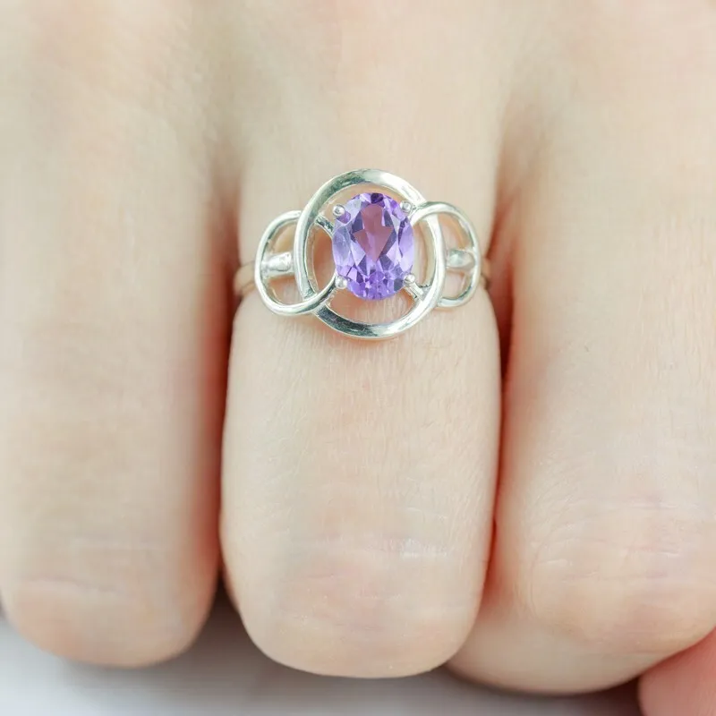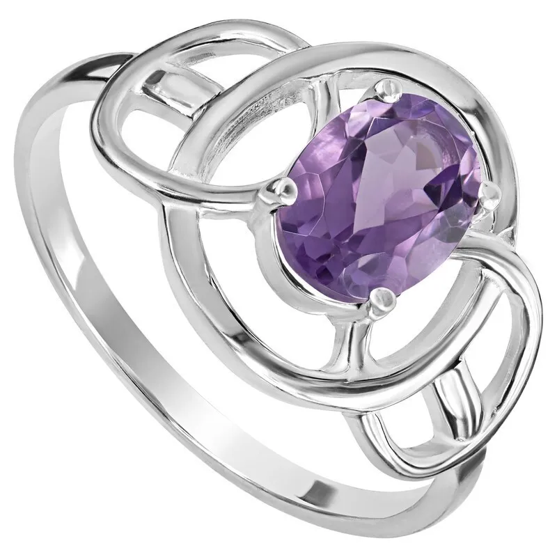 Серебряное кольцо с натуральным аметистом (светлым) - коллекция Юнона. Средний вес изделия с камнями 2.3 гр. Месторождение: Аметист (Приполярный Урал, Россия). Аметист (Натуральный) овал 6*8 мм., средний вес: 1.29 карат. Все изделия собственного производства, гарантия 12 месяцев. Арт. 8412. Аметист — прозрачный или полупрозрачный камень фиолетовых оттенков, подвид кварца. Он гармонизирует разум, снимает стресс, улучшает кровообращение, способствует умственному развитию и личностному росту. Считается, что он также оберегает от головной боли и бессонницы, служит противоядием, помогает избавиться от алкоголизма и наделяет владельца проницательностью, раскрывая «третий глаз» (за который отвечает чакра аджна). В медитации помогает расслабиться и успокоиться. Положенный под подушку, аметист приносит хорошие сны.