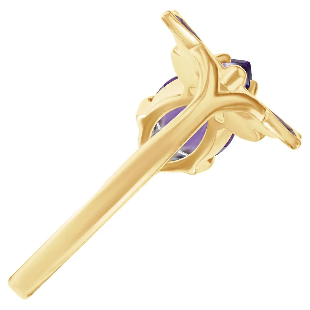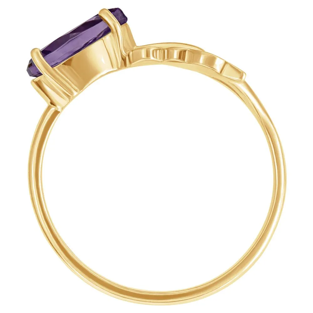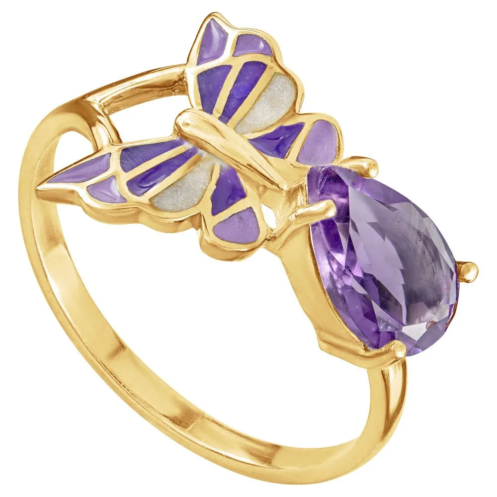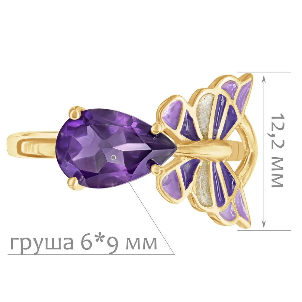 Серебряное кольцо с натуральным аметистом (темным) и эмалью - коллекция Бабочка / покрытие Желтое Золото