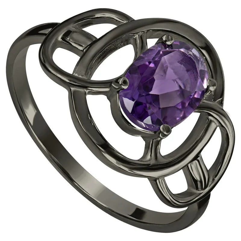 Серебряное кольцо с натуральным аметистом (темным) - коллекция Юнона, покрытие Черный Родий.