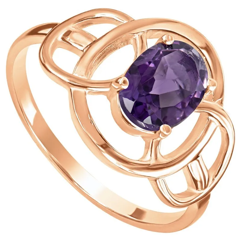 Серебряное кольцо с натуральным аметистом (темным) - коллекция Юнона. Серебряное кольцо 925 пробы с покрытием красное золото. Цвет покрытия соответствует швейцарскому цветовому стандарту NIHS -5N и цвету красного золота 585 в России. На последней фотографии мы разместили сравнительную фотографию 3 цвета золотого покрытия. Помимо предания золотого цвета Вашему изделию, тонкий слой золота защищает от окисления. Для более стойкого эффекта золочения и долговечности покрытия мы дополнительно наносим подслой палладия (Pd). Средний вес изделия с камнями 2.31 гр. Месторождение: Аметист (Приполярный Урал, Россия). Аметист (Натуральный) овал 6*8 мм., средний вес: 1.29 карат. Все изделия собственного производства, гарантия 12 месяцев. Арт. 8457. Аметист — прозрачный или полупрозрачный камень фиолетовых оттенков, подвид кварца. Он гармонизирует разум, снимает стресс, улучшает кровообращение, способствует умственному развитию и личностному росту. Считается, что он также оберегает от головной боли и бессонницы, служит противоядием, помогает избавиться от алкоголизма и наделяет владельца проницательностью, раскрывая «третий глаз» (за который отвечает чакра аджна). В медитации помогает расслабиться и успокоиться. Положенный под подушку, аметист приносит хорошие сны.