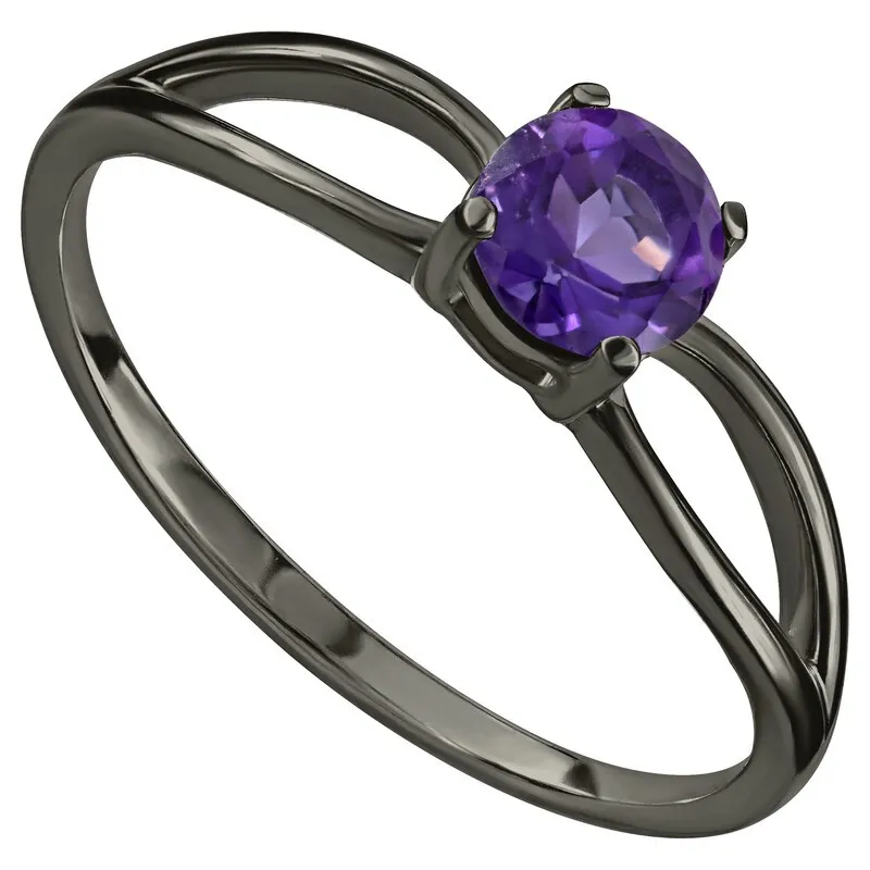 Серебряное кольцо с натуральным аметистом (темным) - коллекция Мона, покрытие Черный Родий.