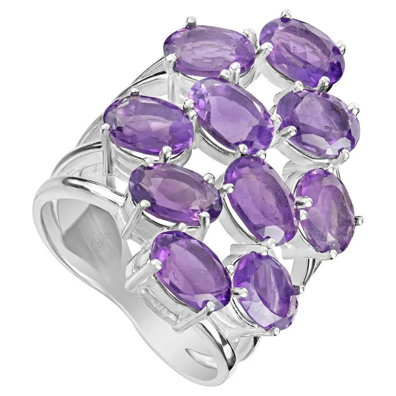 Серебряное кольцо с натуральным аметистом (темным) - коллекция Аэлита. Средний вес украшения с камнями 8.46 гр. Месторождение: Аметист (Приполярный Урал, Россия). Аметист (Натуральный) овал 5*7 мм., средний вес: 0.72 карат. Все изделия собственного производства и имеют гарантию 12 месяцев. Арт. 8462. Аметист — прозрачный или полупрозрачный камень фиолетовых оттенков, подвид кварца. Он гармонизирует разум, снимает стресс, улучшает кровообращение, способствует умственному развитию и личностному росту. Считается, что он также оберегает от головной боли и бессонницы, служит противоядием, помогает избавиться от алкоголизма и наделяет владельца проницательностью, раскрывая «третий глаз» (за который отвечает чакра аджна). В медитации помогает расслабиться и успокоиться. Положенный под подушку, аметист приносит хорошие сны.