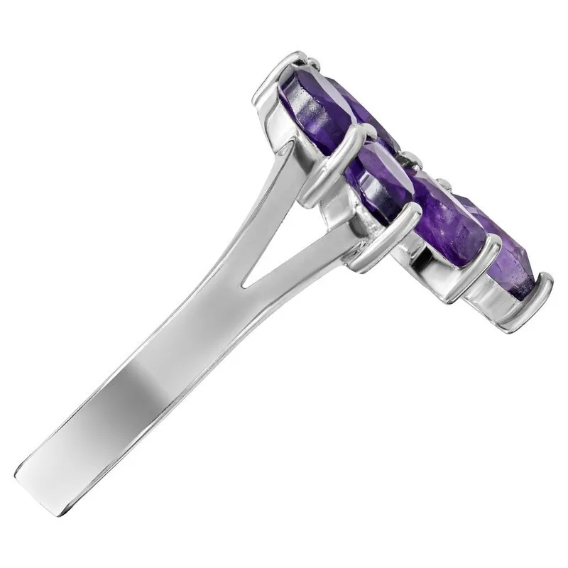 Серебряное кольцо с натуральным аметистом (темным) - коллекция Искра / покрытие Чистое Серебро
