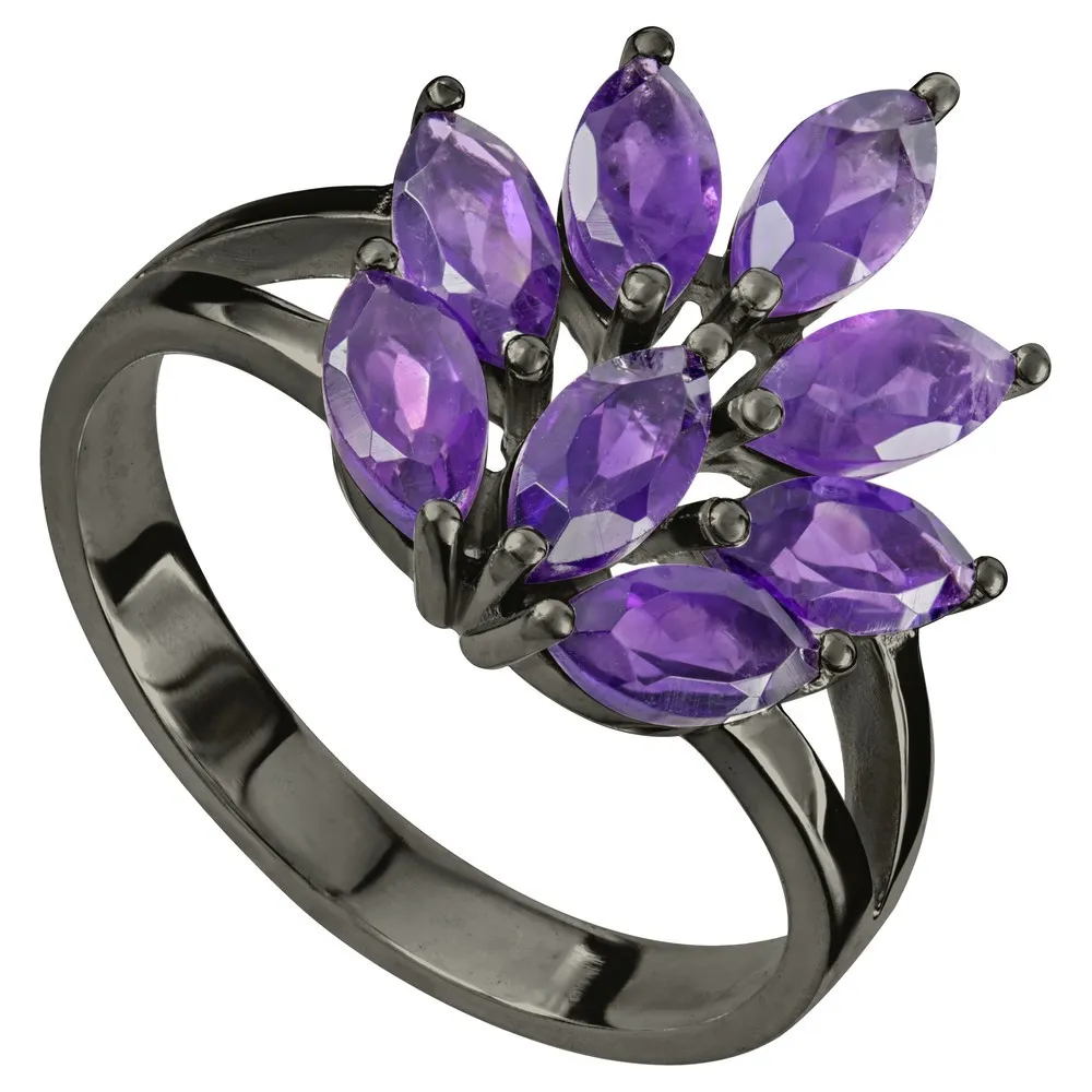 Серебряное кольцо с натуральным аметистом (темным) - коллекция Искра, покрытие Черный Родий.