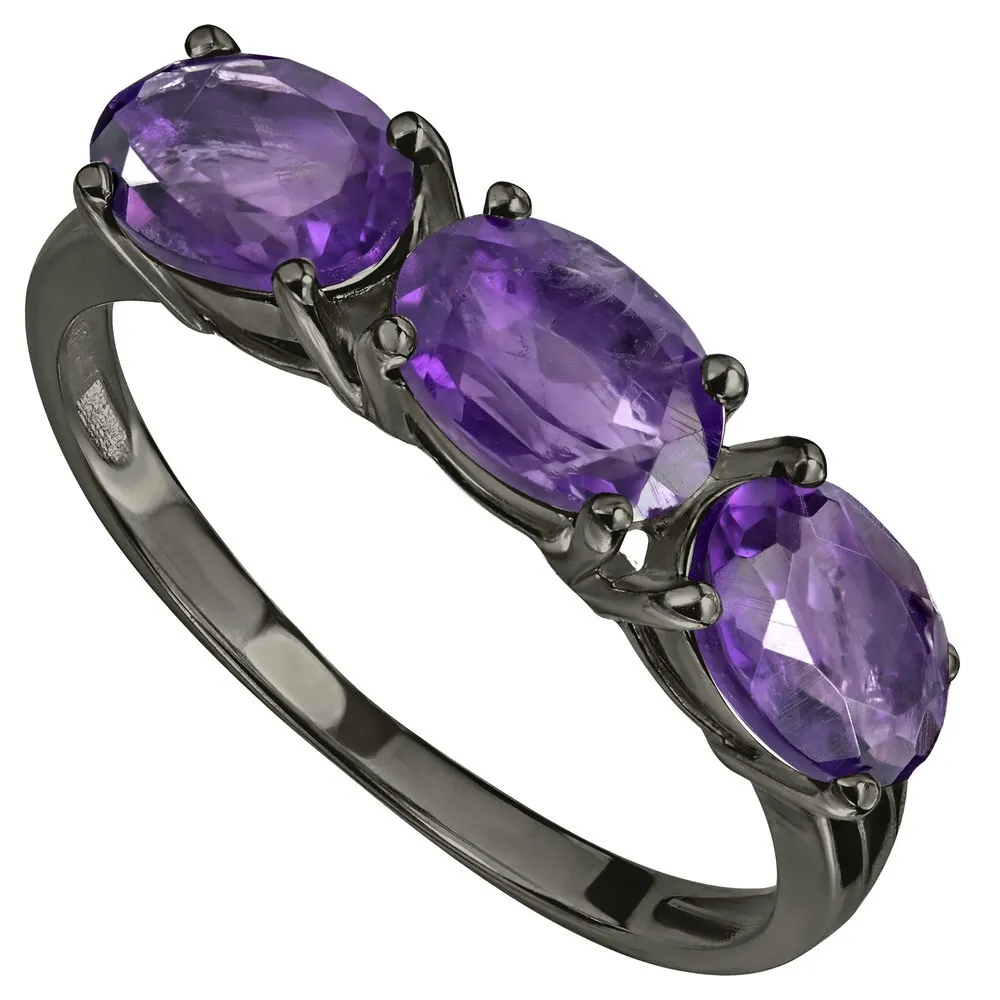 Серебряное кольцо с натуральным аметистом (темным) - коллекция Муза, покрытие Черный Родий.