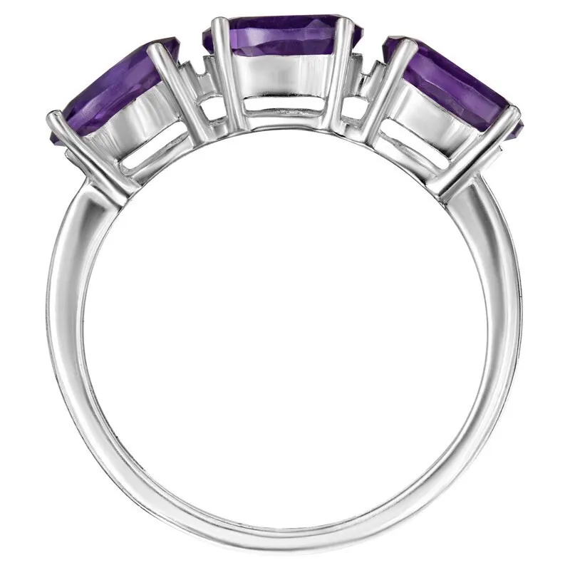 Серебряное кольцо с натуральным аметистом (темным) - коллекция Муза / покрытие Белый Родий