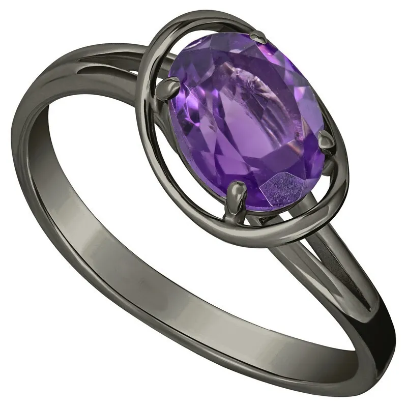 Серебряное кольцо с натуральным аметистом (темным) - коллекция Фрейя, покрытие Черный Родий.