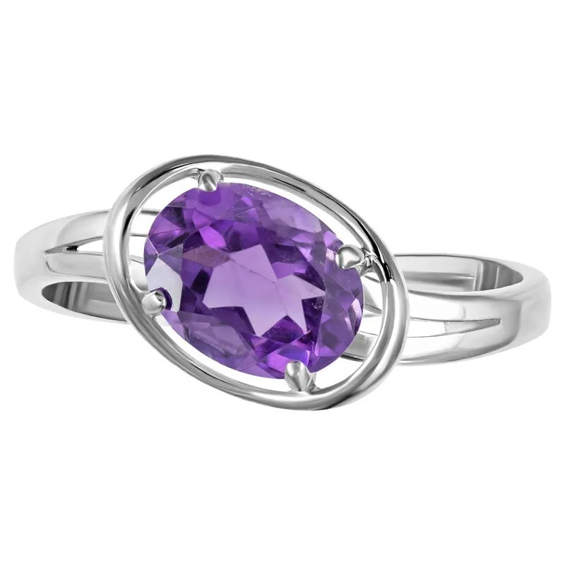 Серебряное кольцо с натуральным аметистом (темным) - коллекция Фрейя. Средний вес украшения с камнями 2.31 гр. Месторождение: Аметист (Приполярный Урал, Россия). Аметист (Натуральный) овал 6*8 мм., средний вес: 1.29 карат. Все изделия собственного производства и имеют гарантию 12 месяцев. Арт. 8496. Аметист — прозрачный или полупрозрачный камень фиолетовых оттенков, подвид кварца. Он гармонизирует разум, снимает стресс, улучшает кровообращение, способствует умственному развитию и личностному росту. Считается, что он также оберегает от головной боли и бессонницы, служит противоядием, помогает избавиться от алкоголизма и наделяет владельца проницательностью, раскрывая «третий глаз» (за который отвечает чакра аджна). В медитации помогает расслабиться и успокоиться. Положенный под подушку, аметист приносит хорошие сны.