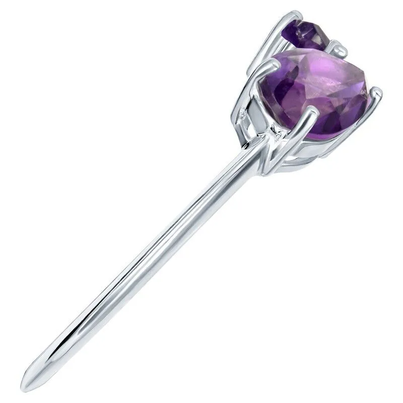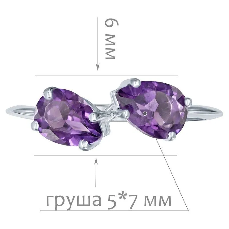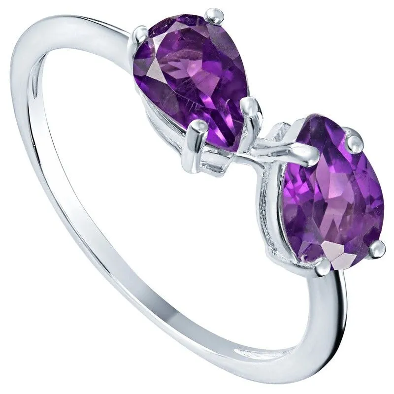 Серебряное кольцо с натуральным аметистом (темный) - коллекция Дуэт / покрытие Чистое Серебро.Средний вес украшения с камнями 1.44 гр.Месторождение(я): Аметист (Приполярный Урал, Россия).Ювелирные вставки:Аметист (Натуральный) груша 5*7 мм., средний вес: 0.65 карат.Все изделия собственного производства и имеют гарантию 12 месяцев. Арт. 8621AG. Аметист — прозрачный или полупрозрачный камень фиолетовых оттенков, подвид кварца. Он гармонизирует разум, снимает стресс, улучшает кровообращение, способствует умственному развитию и личностному росту. Считается, что он также оберегает от головной боли и бессонницы, служит противоядием, помогает избавиться от алкоголизма и наделяет владельца проницательностью, раскрывая «третий глаз» (за который отвечает чакра аджна). В медитации помогает расслабиться и успокоиться. Положенный под подушку, аметист приносит хорошие сны.