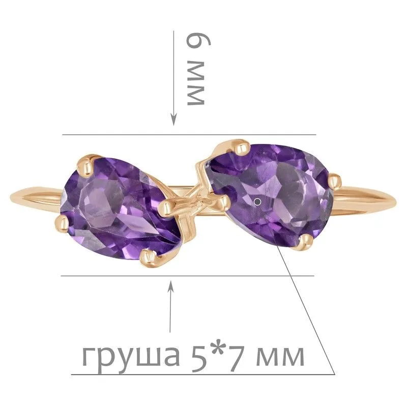 Серебряное кольцо с натуральным аметистом (темный) - коллекция Дуэт / покрытие Розовое Золото.Средний вес украшения с камнями 1.53 гр.Месторождение(я): Аметист (Приполярный Урал, Россия).Ювелирные вставки:Аметист (Натуральный) груша 5*7 мм., средний вес: 0.65 карат.Все изделия собственного производства и имеют гарантию 12 месяцев. Арт. 8621PG. Аметист — прозрачный или полупрозрачный камень фиолетовых оттенков, подвид кварца. Он гармонизирует разум, снимает стресс, улучшает кровообращение, способствует умственному развитию и личностному росту. Считается, что он также оберегает от головной боли и бессонницы, служит противоядием, помогает избавиться от алкоголизма и наделяет владельца проницательностью, раскрывая «третий глаз» (за который отвечает чакра аджна). В медитации помогает расслабиться и успокоиться. Положенный под подушку, аметист приносит хорошие сны.