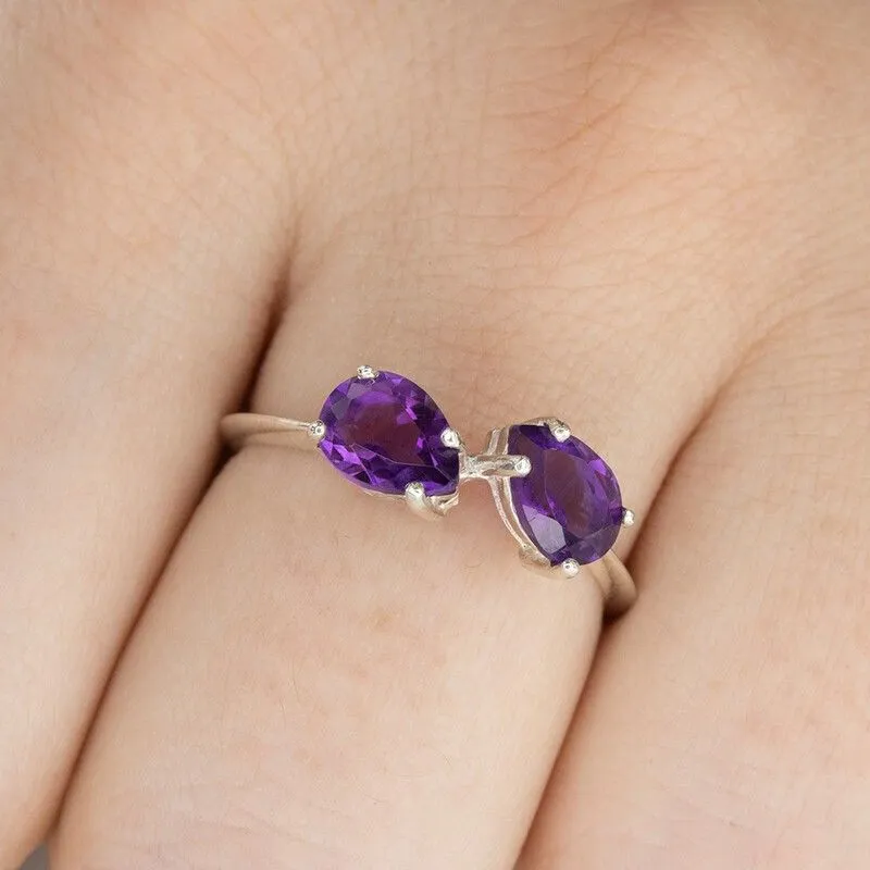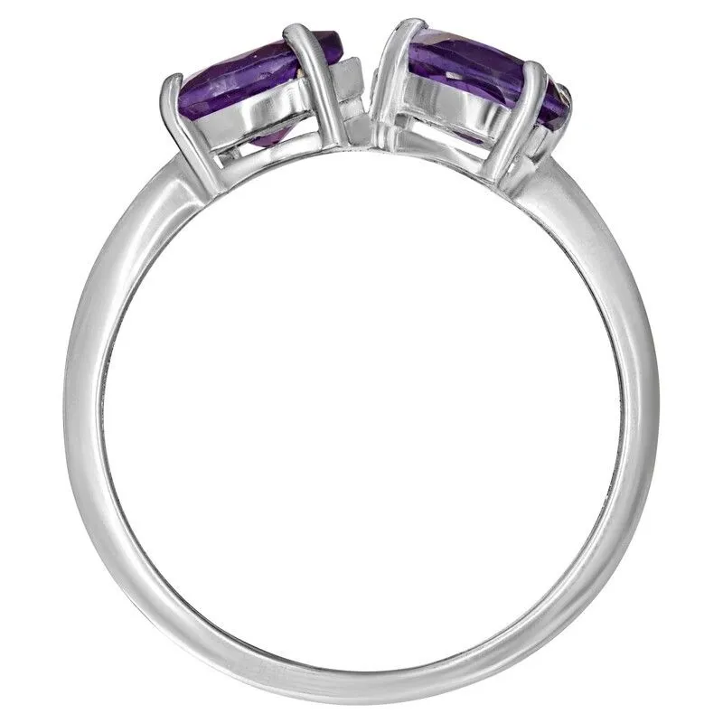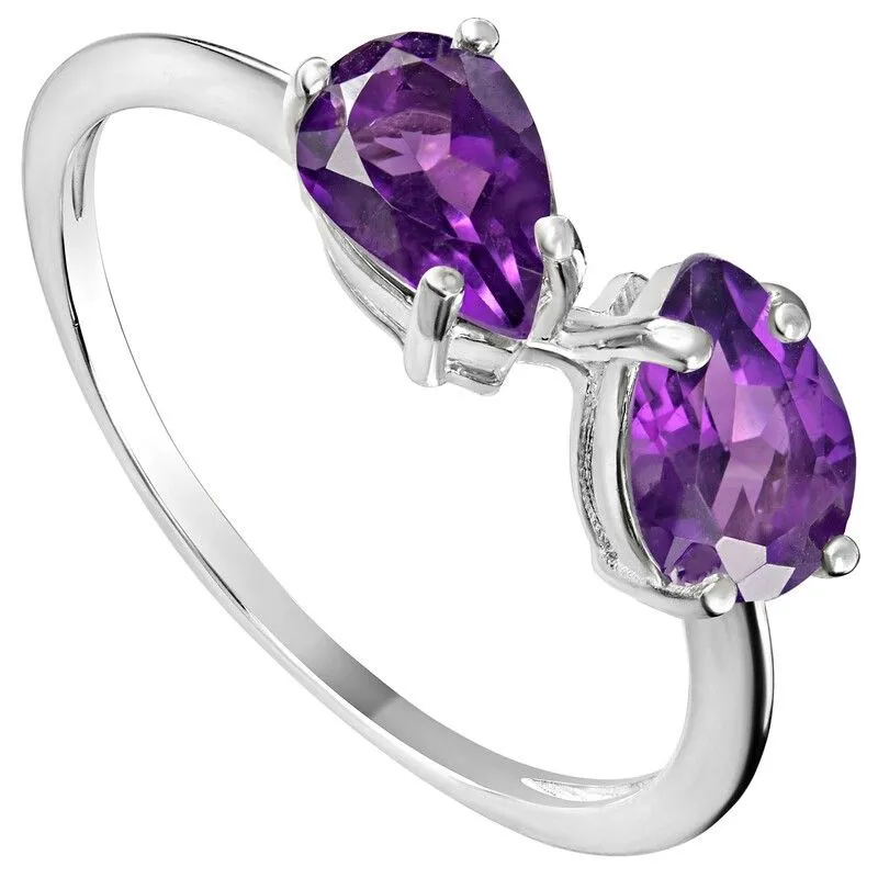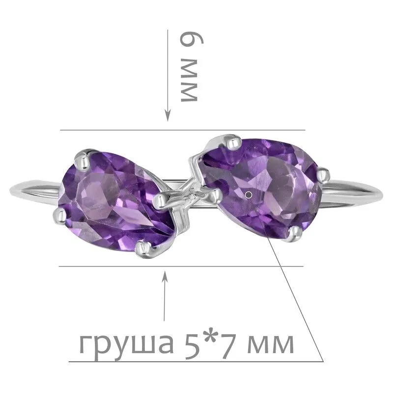 Серебряное кольцо с натуральным аметистом (темный) - коллекция Дуэт / покрытие Белый Родий.Средний вес украшения с камнями 1.41 гр.Месторождение(я): Аметист (Приполярный Урал, Россия).Ювелирные вставки:Аметист (Натуральный) груша 5*7 мм., средний вес: 0.65 карат.Все изделия собственного производства и имеют гарантию 12 месяцев. Арт. 8621WR. Аметист — прозрачный или полупрозрачный камень фиолетовых оттенков, подвид кварца. Он гармонизирует разум, снимает стресс, улучшает кровообращение, способствует умственному развитию и личностному росту. Считается, что он также оберегает от головной боли и бессонницы, служит противоядием, помогает избавиться от алкоголизма и наделяет владельца проницательностью, раскрывая «третий глаз» (за который отвечает чакра аджна). В медитации помогает расслабиться и успокоиться. Положенный под подушку, аметист приносит хорошие сны.