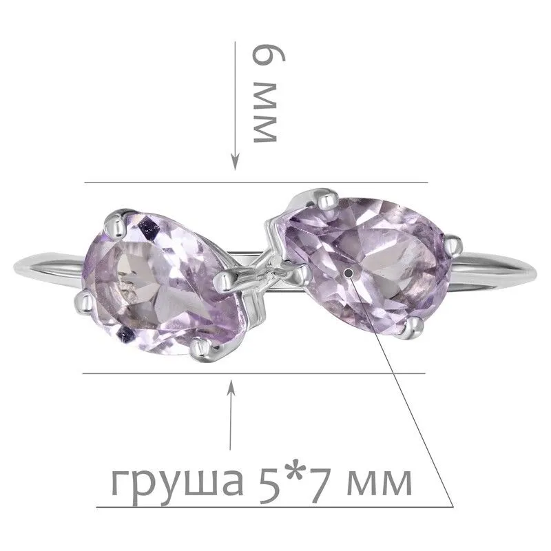 Серебряное кольцо с натуральным аметистом (светлый) - коллекция Дуэт / Без покрытия.Средний вес украшения с камнями 1.63 гр.Месторождение(я): Аметист (Приполярный Урал, Россия).Ювелирные вставки:Аметист (Натуральный) груша 5*7 мм., средний вес: 0.65 карат.Все изделия собственного производства и имеют гарантию 12 месяцев. Арт. 8623NP. Аметист — прозрачный или полупрозрачный камень фиолетовых оттенков, подвид кварца. Он гармонизирует разум, снимает стресс, улучшает кровообращение, способствует умственному развитию и личностному росту. Считается, что он также оберегает от головной боли и бессонницы, служит противоядием, помогает избавиться от алкоголизма и наделяет владельца проницательностью, раскрывая «третий глаз» (за который отвечает чакра аджна). В медитации помогает расслабиться и успокоиться. Положенный под подушку, аметист приносит хорошие сны.
