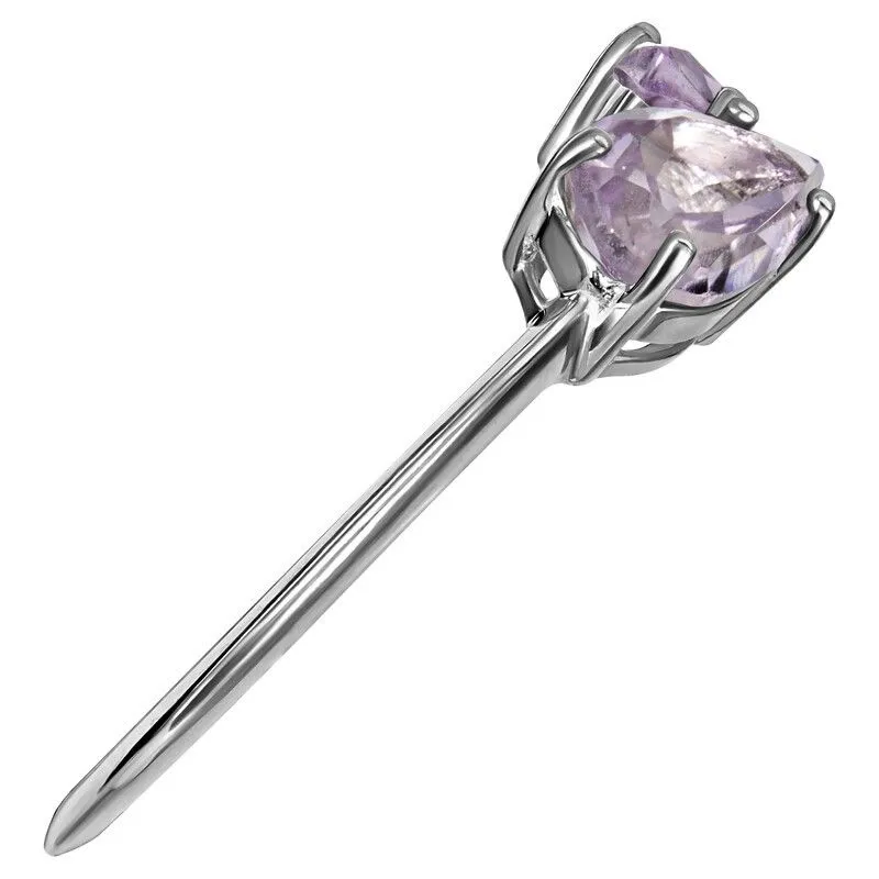 Серебряное кольцо с натуральным аметистом (светлый) - коллекция Дуэт / покрытие Палладий.Средний вес украшения с камнями 1.44 гр.Месторождение(я): Аметист (Приполярный Урал, Россия).Ювелирные вставки:Аметист (Натуральный) груша 5*7 мм., средний вес: 0.65 карат.Все изделия собственного производства и имеют гарантию 12 месяцев. Арт. 8623PD. Аметист — прозрачный или полупрозрачный камень фиолетовых оттенков, подвид кварца. Он гармонизирует разум, снимает стресс, улучшает кровообращение, способствует умственному развитию и личностному росту. Считается, что он также оберегает от головной боли и бессонницы, служит противоядием, помогает избавиться от алкоголизма и наделяет владельца проницательностью, раскрывая «третий глаз» (за который отвечает чакра аджна). В медитации помогает расслабиться и успокоиться. Положенный под подушку, аметист приносит хорошие сны.